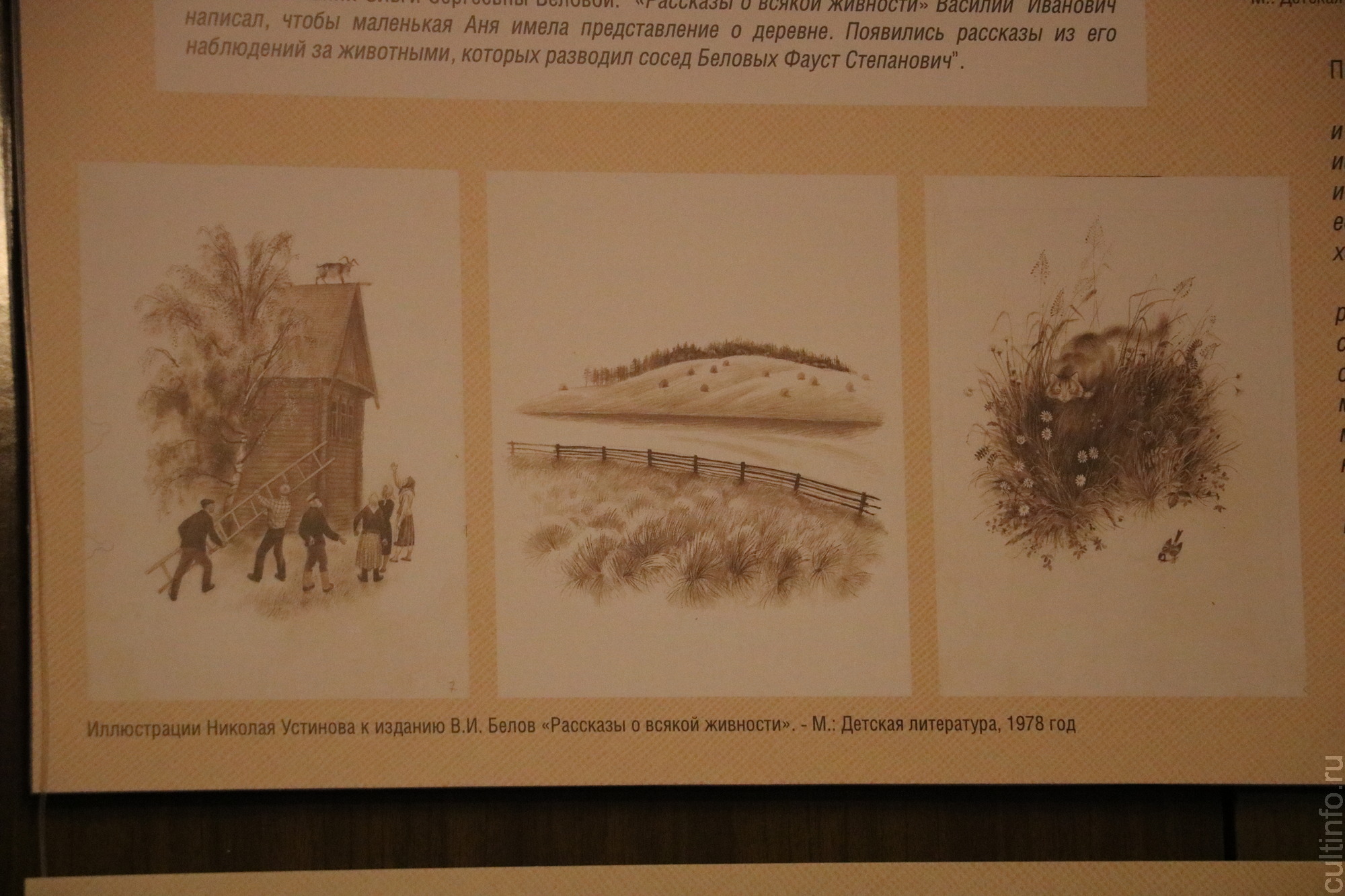 «Василий Белов увлекательно, но просто в своих произведениях рассказывает интересные истории из мира русской деревни, его книги учат маленьких читателей быть добрее и лучше, сохранять народные традиции, не быть равнодушными ко всему живому, беречь и любить братьев наших меньших и окружающую природу. И именно поэтому мы первую выставку в Год семьи посвятили этой теме», – отметила заведующая Музеем-квартирой Ольга Анфимова.