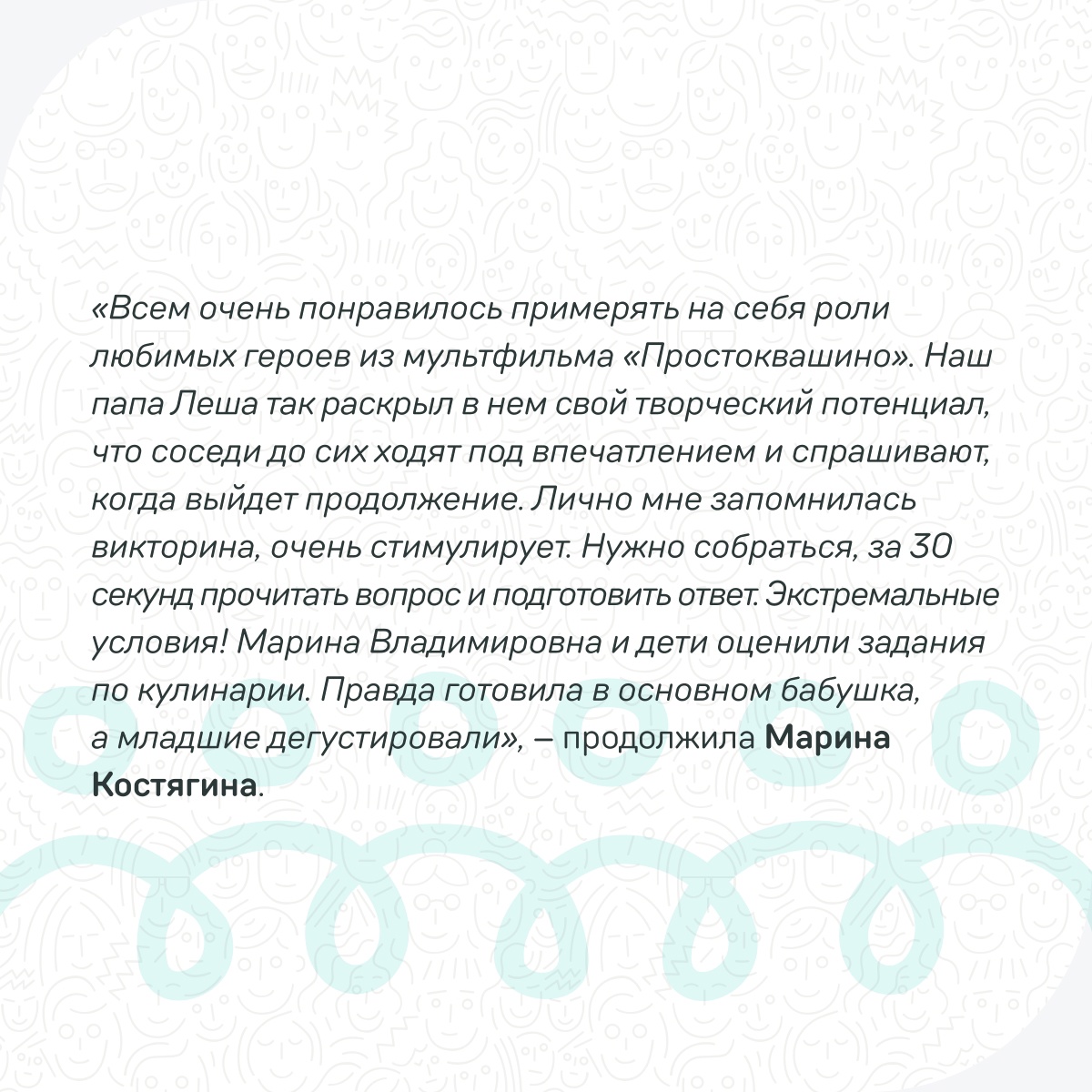 Истории конкурсантов публикуются в группе проекта vk.com/public216538617, например, здесь можно прочитать о семье Алферьевых-Костягиных-Славновых из Вологодской области, которые прошли в полуфинал.