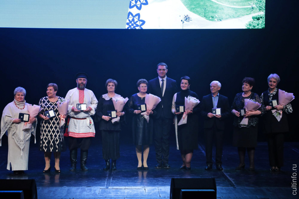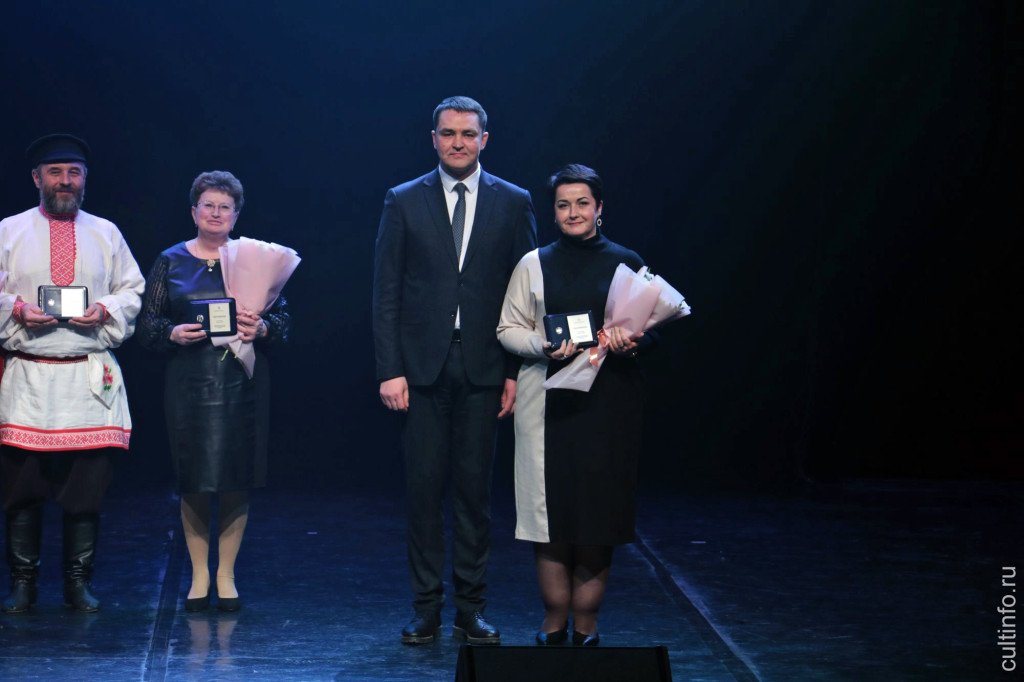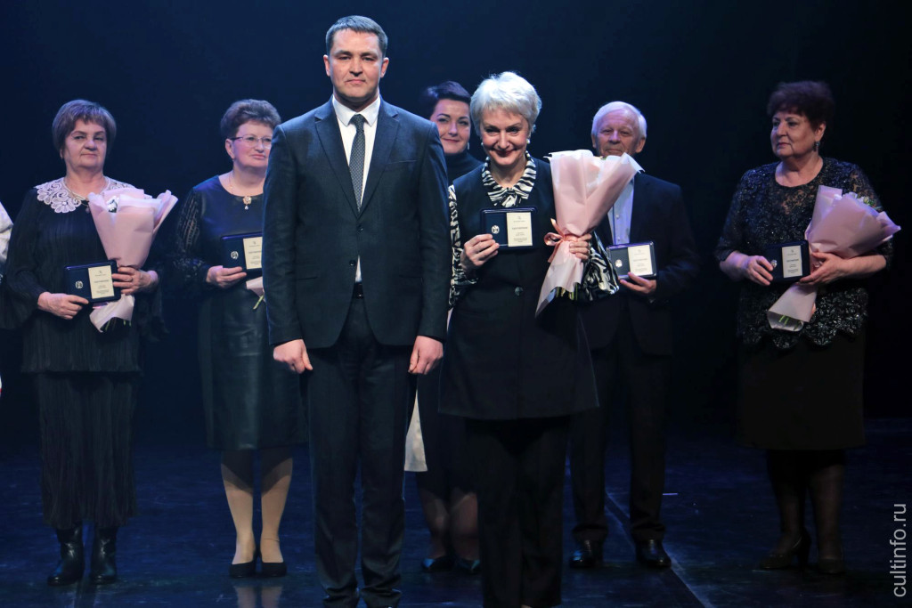 День работника культуры объединяет представителей разных творческих профессий, и в честь праздника на Вологодчине сложилась добрая традиция: ежегодно десять жителей региона становятся обладателями звания «Заслуженный работник культуры Вологодской области». Почетное звание присуждается настоящим профессионалам, талантливым и активным людям, которые достигли выдающихся успехов, долго и плодотворно работают на ниве культуры и искусства родного региона. Награда была учреждена в 2020 году, а первых обладателей звания назвали в 2021-м. В преддверии профессионального праздника, который отмечается 25 марта, еще десять вологжан получили награду. Церемония награждения, которая в этом году проходит уже в четвертый раз, состоялась в Вологодском драматическом театре в рамках областного торжественного мероприятия ко Дню работника культуры. Нагрудные знаки заслуженным работникам культуры Вологодской области вручил начальник начальник Департамента культуры Владимир Осиповский. Обладателями почетного звания «Заслуженный работник культуры Вологодской области» стали: