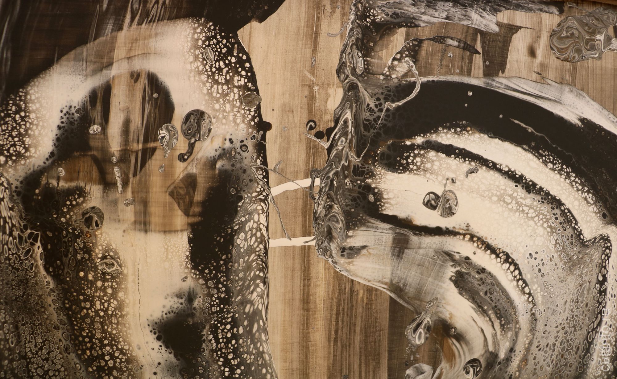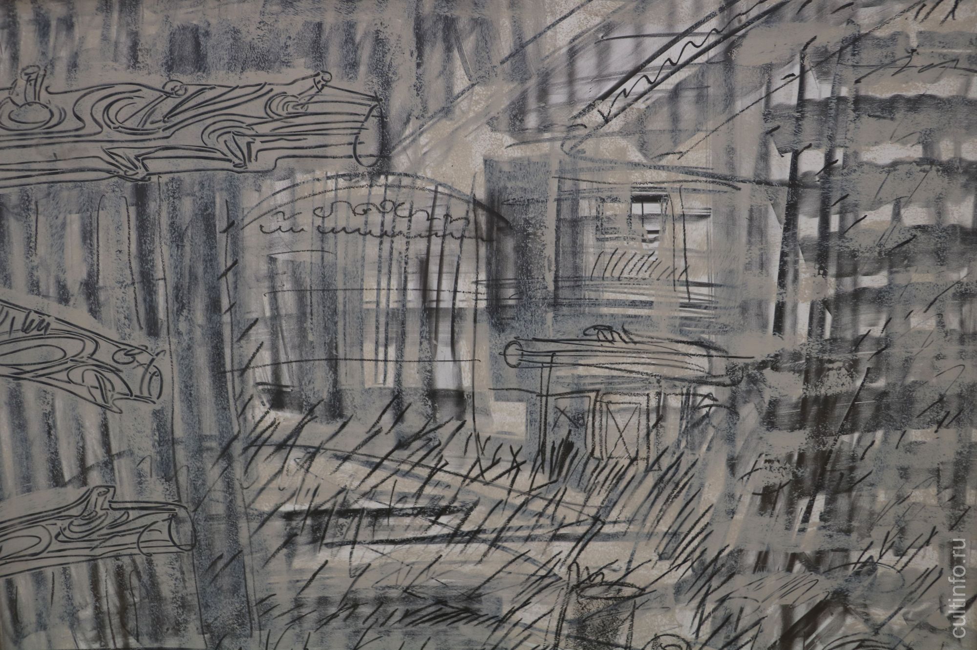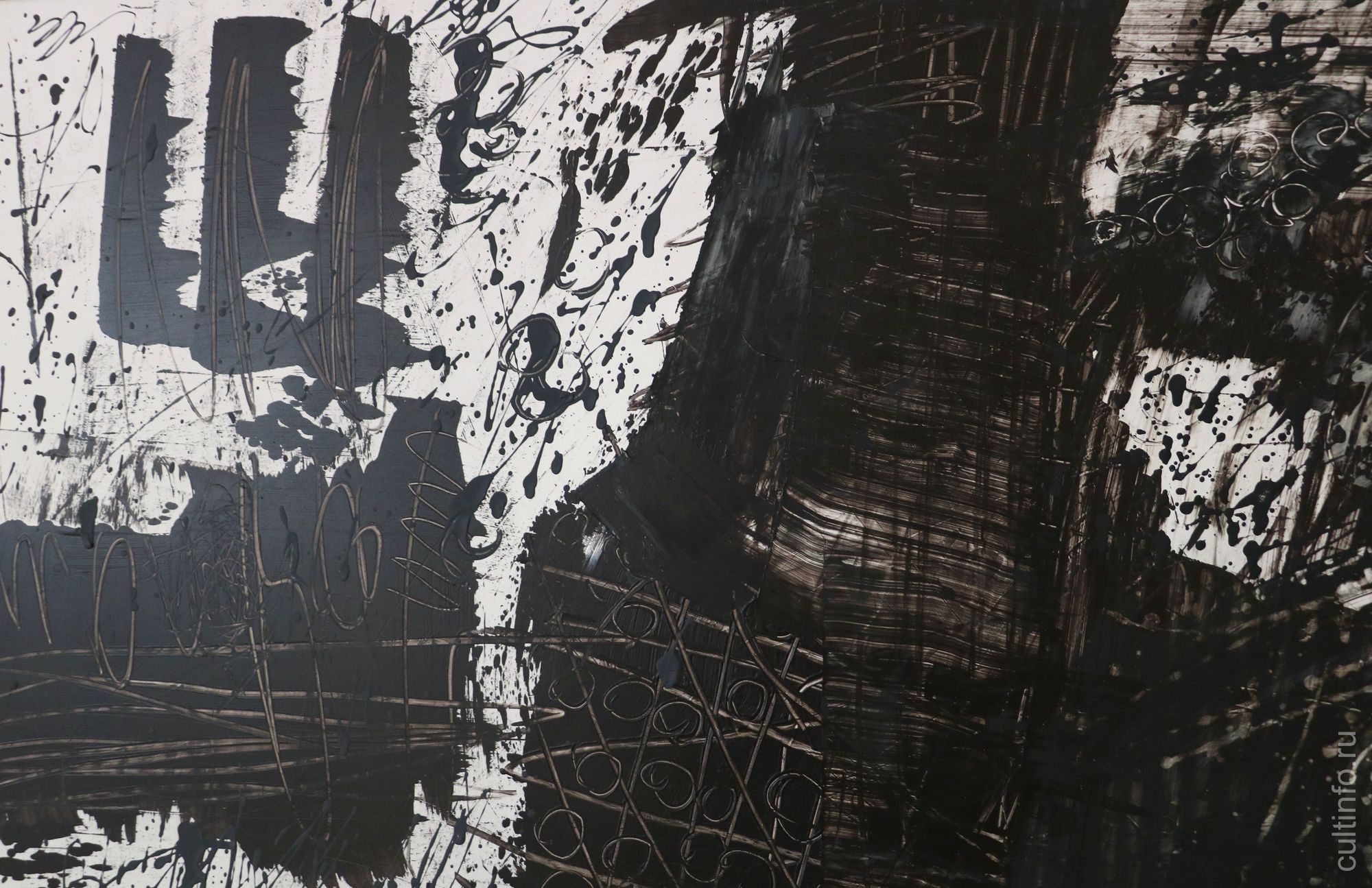 Работа «Театр Кабуки» концентрированно демонстрирует нам приемы, которые Елена Логинова использует в своей работе. Три горизонтальных полотна объединены в триптих. В названии автор отсылает зрителя к классической форме японского театрального искусства. Одновременно это мастерская трехчастная абстракция, а горизонтальная ориентация полотен подсказывает направление движению взгляда зрителя, следующего словно за развитием некоего действа, за проявляющимися из хаоса пятен образами. И сама Елена в этой работе призывает зрителя к полной свободе как в поиске образов, так и в выстраивании драматургии действа.