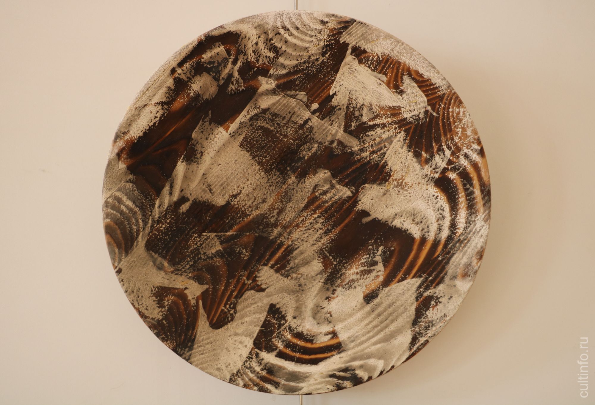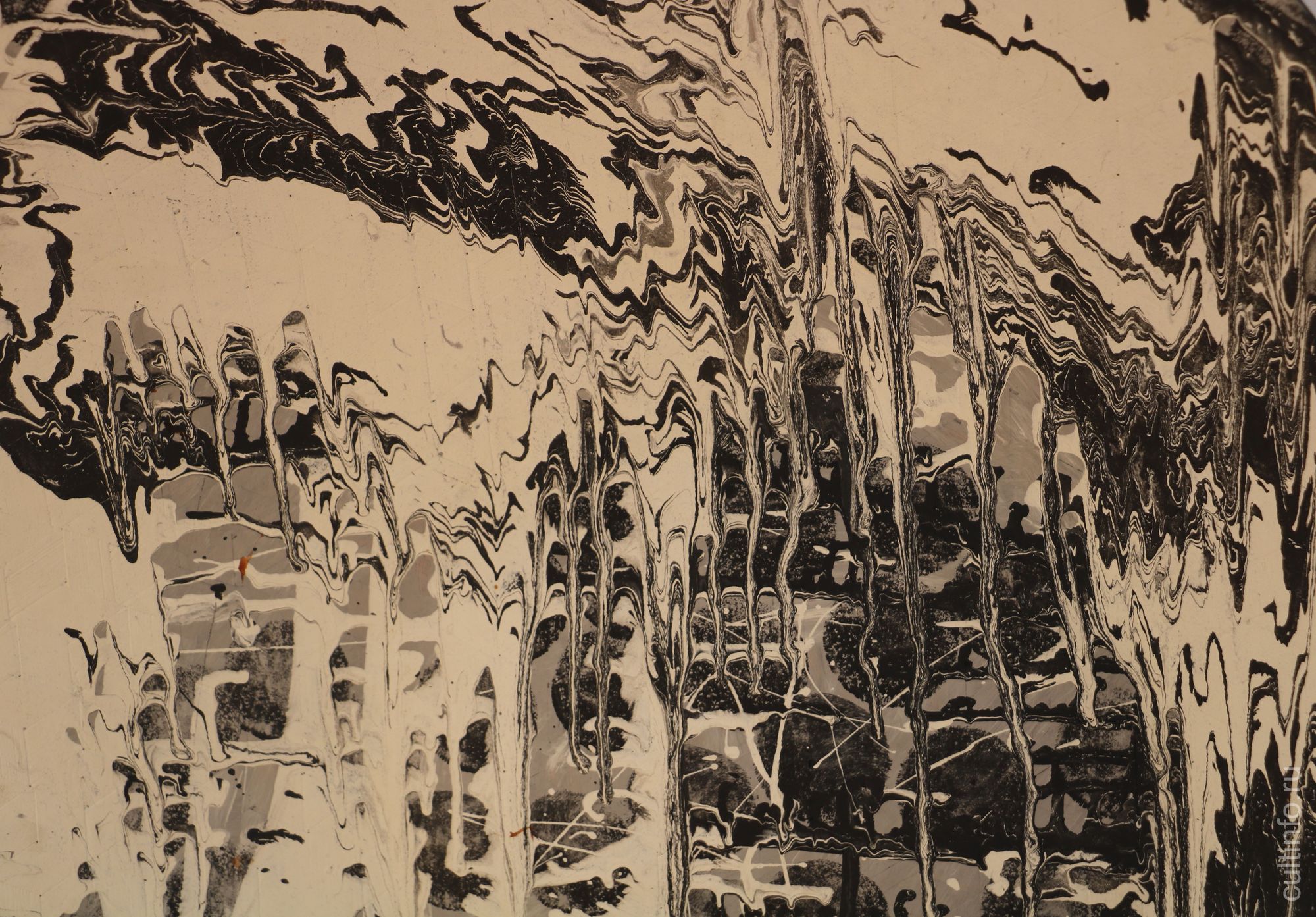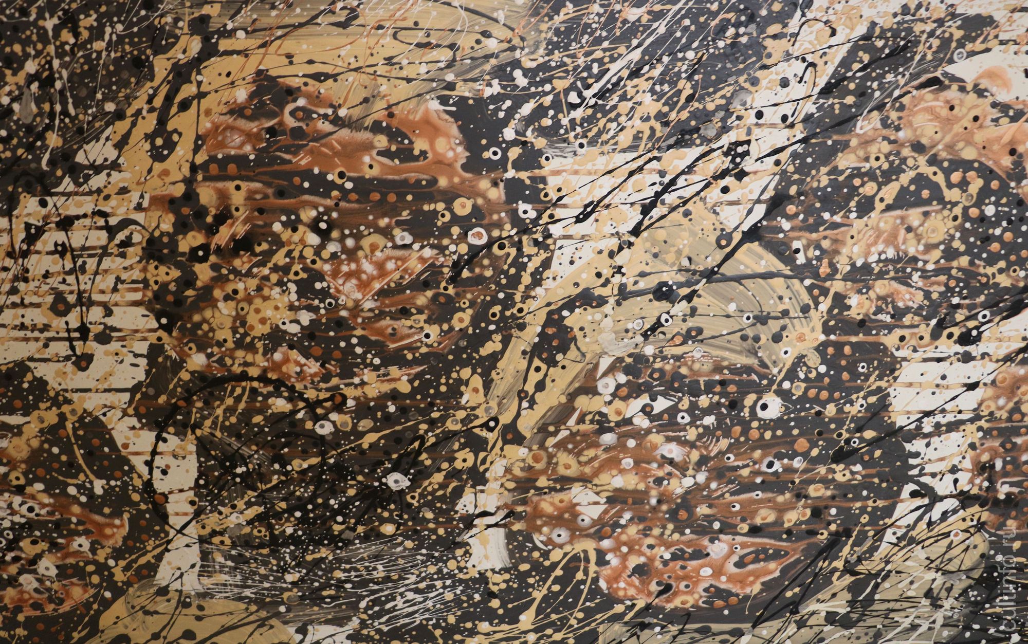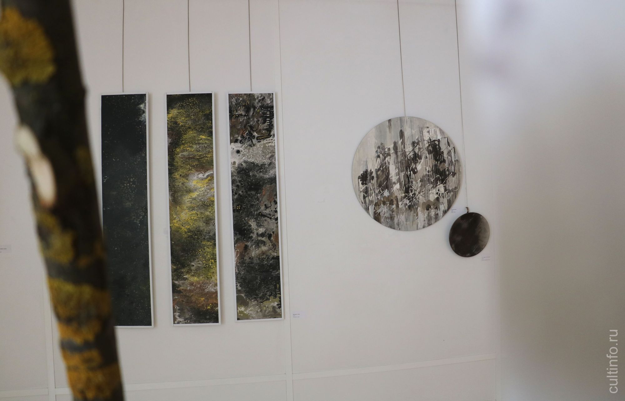 «Работа «Райские яблоки». Обратите внимание на то, что не будь рядом названия, мы наблюдали бы перед собой буквально классический пример экспрессивной абстракции: брызги краски, сложные цвета живописных пятен. Но сама Елена трактует эти образы, как упавшие на траву, тронутые первым заморозком райские яблоки. Образ чрезвычайно ёмкий и тревожный, на мой взгляд, что очень точно совпадает по ощущению с духовными исканиями сюрреалистов, а позднее и абстракционистов ХХ века. Елена во многих нюансах своей работы наследует традиции искусства, так скажем, трудных времен», – поделился Иван Беляев.