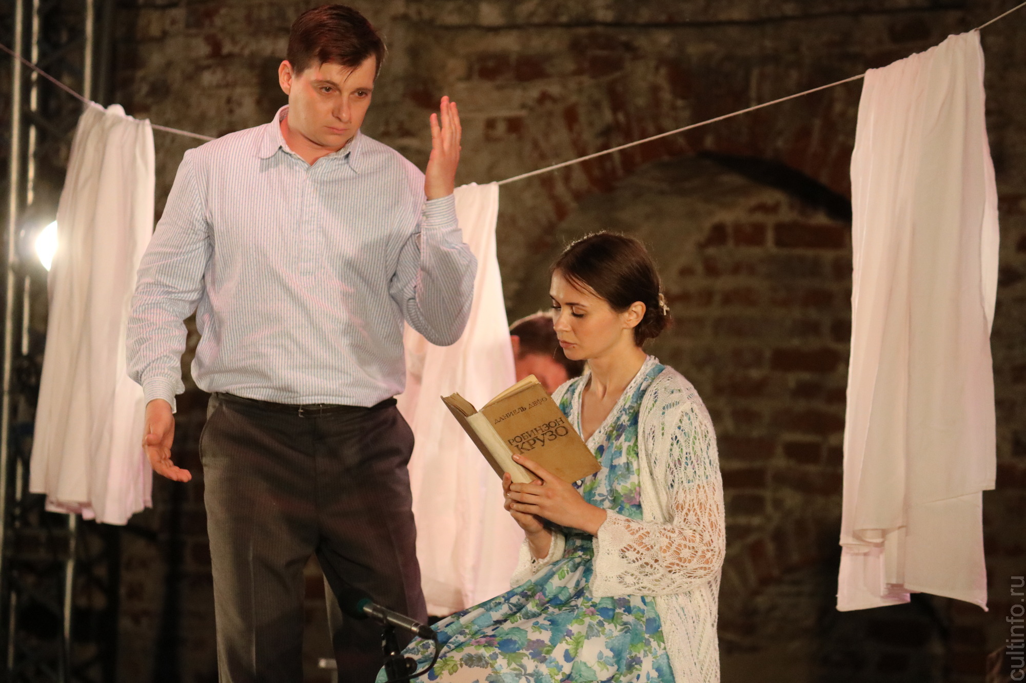Спектакль очень лаконичен, в нем минимум декораций, но артистам удалось очень достоверно воссоздать атмосферу предвоенного времени с ее простотой и искренностью. Их первое свидание выпало на 22 июня 1941 года. Дождь, сеновал, признания и мечты о троих детях – они только вдвоем, словно больше нет ничего и никого в этом мире, словно они на необитаемом острове – Робинзон и его Пятница. Конечно, зритель понимает, что буквально на следующий день юноша уйдет добровольцем на фронт. Но эти счастливые мгновения останутся у него в памяти навсегда, и каждый год уже после войны он будет приходить на то место, где расстреляли его Капельку – партизанку по прозвищу «Пятница».