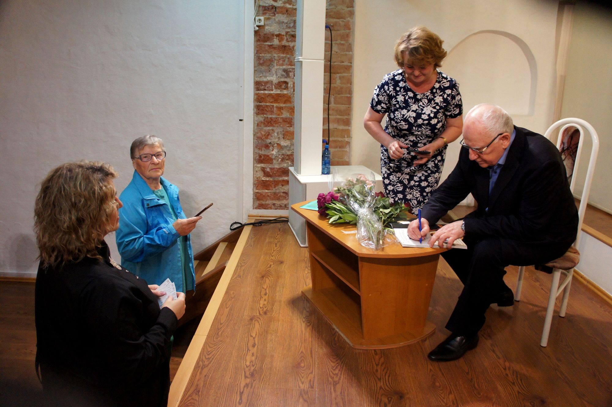 Валерий Александрович рассказывал со сцены о своем творческом пути. Говорил, что сначала работал в Орловском театре рабочим сцены, потом поступил в институты, а далее уехал в Ленинград, где трудился в Александрийском театре с великими артистами – Меркурьевым, Симоновым, Толубеевым…