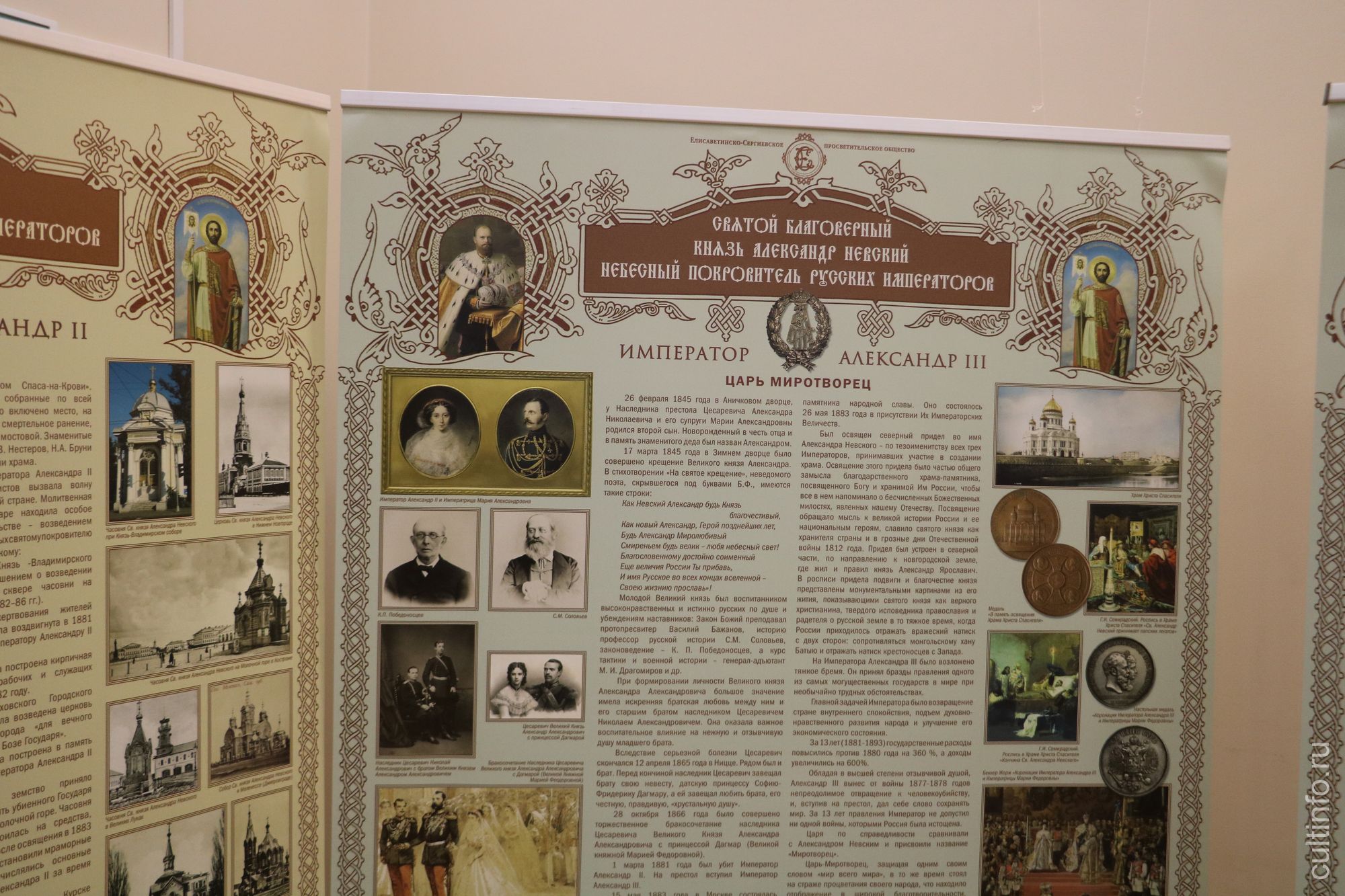 После церемонии подписания соглашения в Вологодской областной научной библиотеке состоялась презентация передвижной выставки «Святой благоверный князь Александр Невский – небесный покровитель русских императоров». Экспозиция посвящена истории почитания выдающегося полководца, правителя и защитника Отечества – князя Александра Невского, который своей государственной деятельностью и военными победами на долгие годы защитил Русь от посягательств с Запада, обеспечил независимость Русской Православной церкви и русского народа от римской католической церкви, заложил основы взаимоприемлемых отношений с Золотой Ордой, что явилось началом пути к освобождению от монголо-татарского ига. Выставка размещена в Вологодской областной библиотеке, ознакомиться с ней можно в рабочее время учреждения. Организаторы подчеркнули, что впоследствии выставка будет путешествовать по Вологодской области.