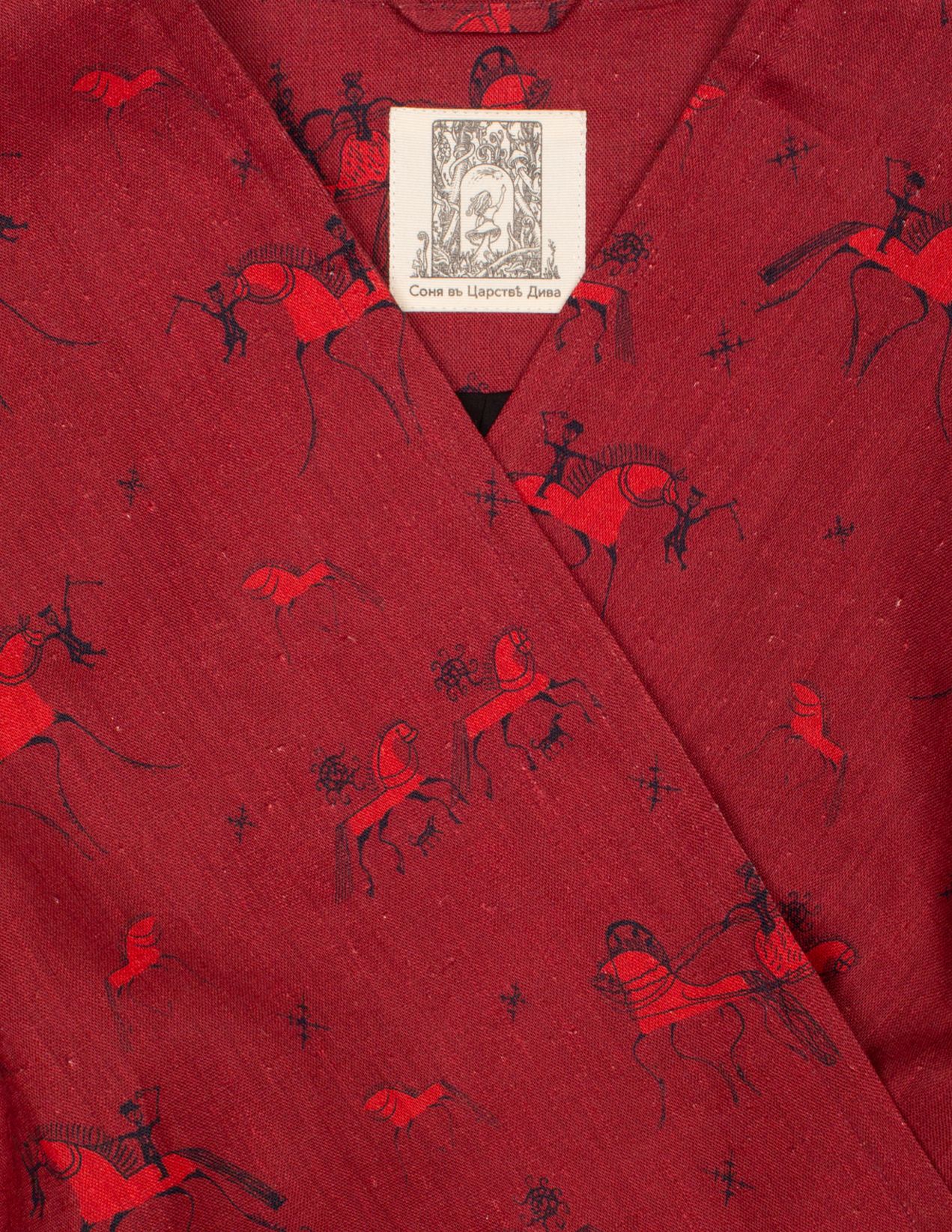 «Когда книга Льюиса Кэролла, которая нам известна под названием «Алиса в Стране Чудес», впервые оказалась в России и была переведена, то называлась она иначе – «Соня в Царстве Дива». Девочка, стоящая под огромным грибом и ищущая себя в необъятном, загадочном мире – это образ и суть нашего подхода к созданию одежды. Через нее тоже прорастает то самое Русское Бессознательное.