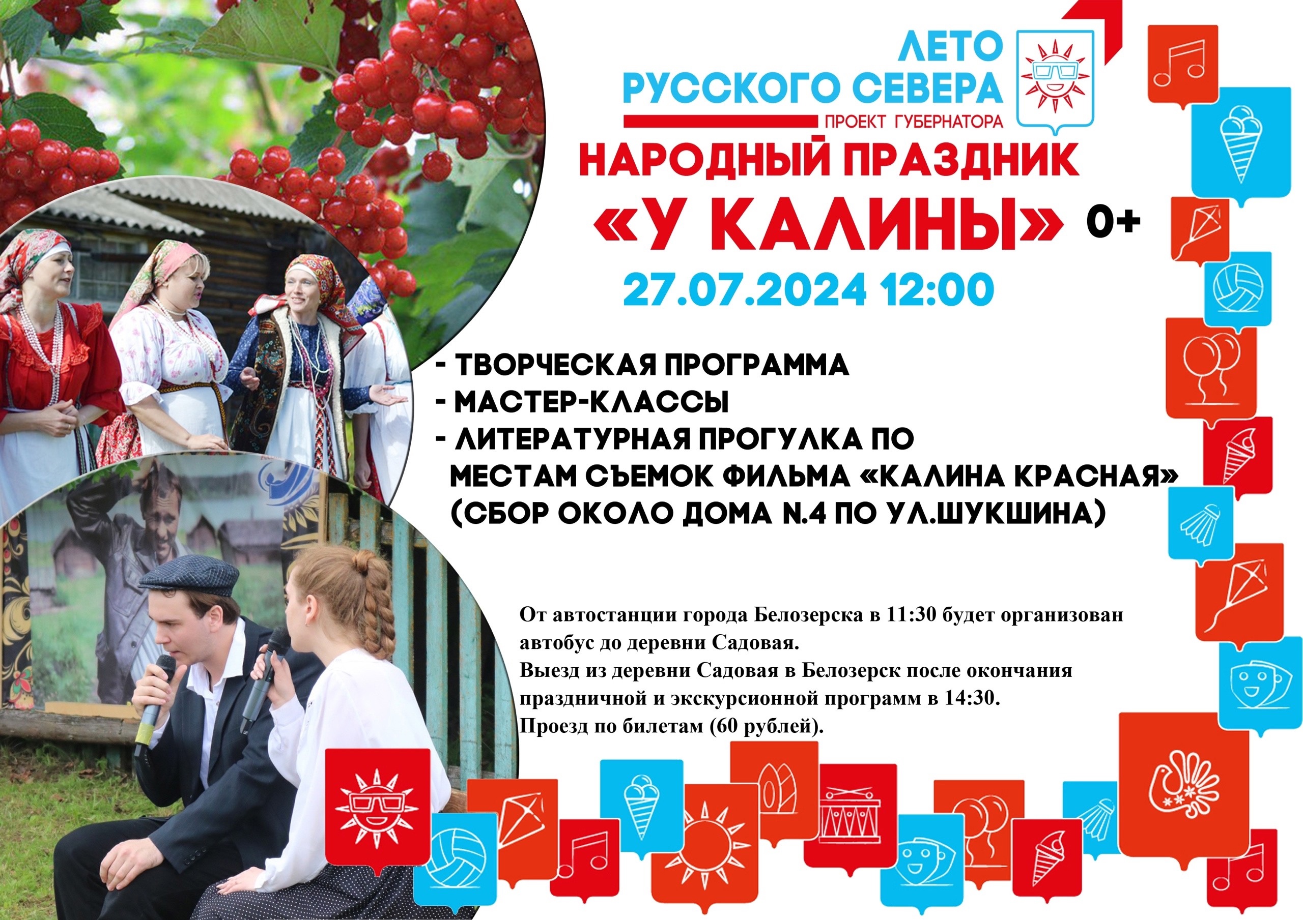 От автостанции города Белозерска в 11:30 будет организован автобус до деревни Садовая.