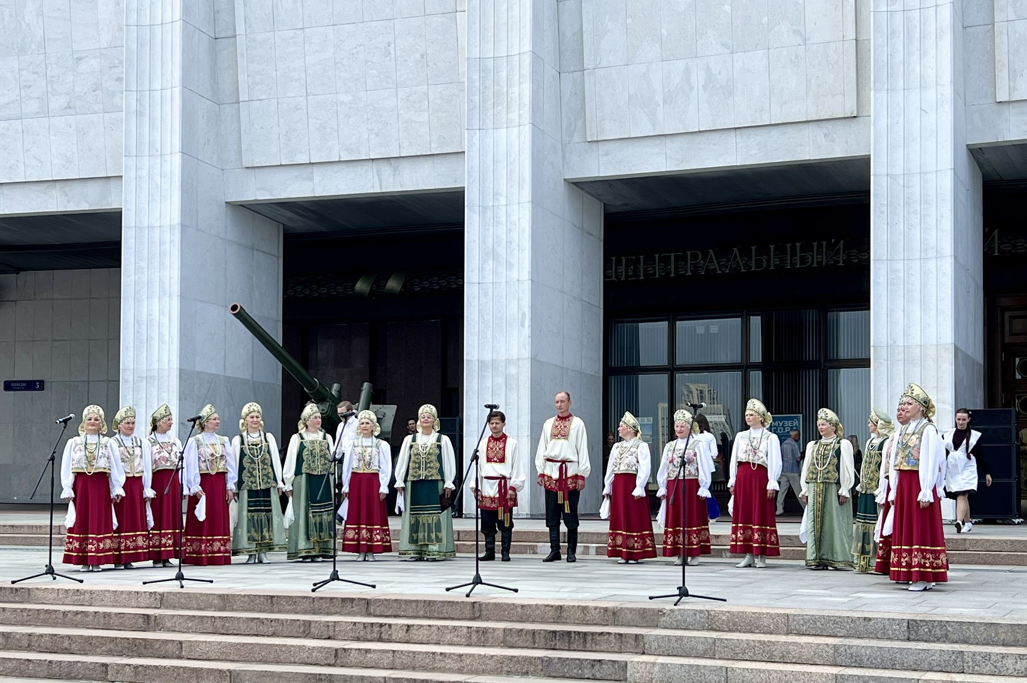 На площади перед Музеем Победы собрались зрители из многих стран. Ансамбль завороженно слушали в том числе туристы из Китая, Индии и стран ближнего зарубежья. Радует, что среди зрителей было много детей!