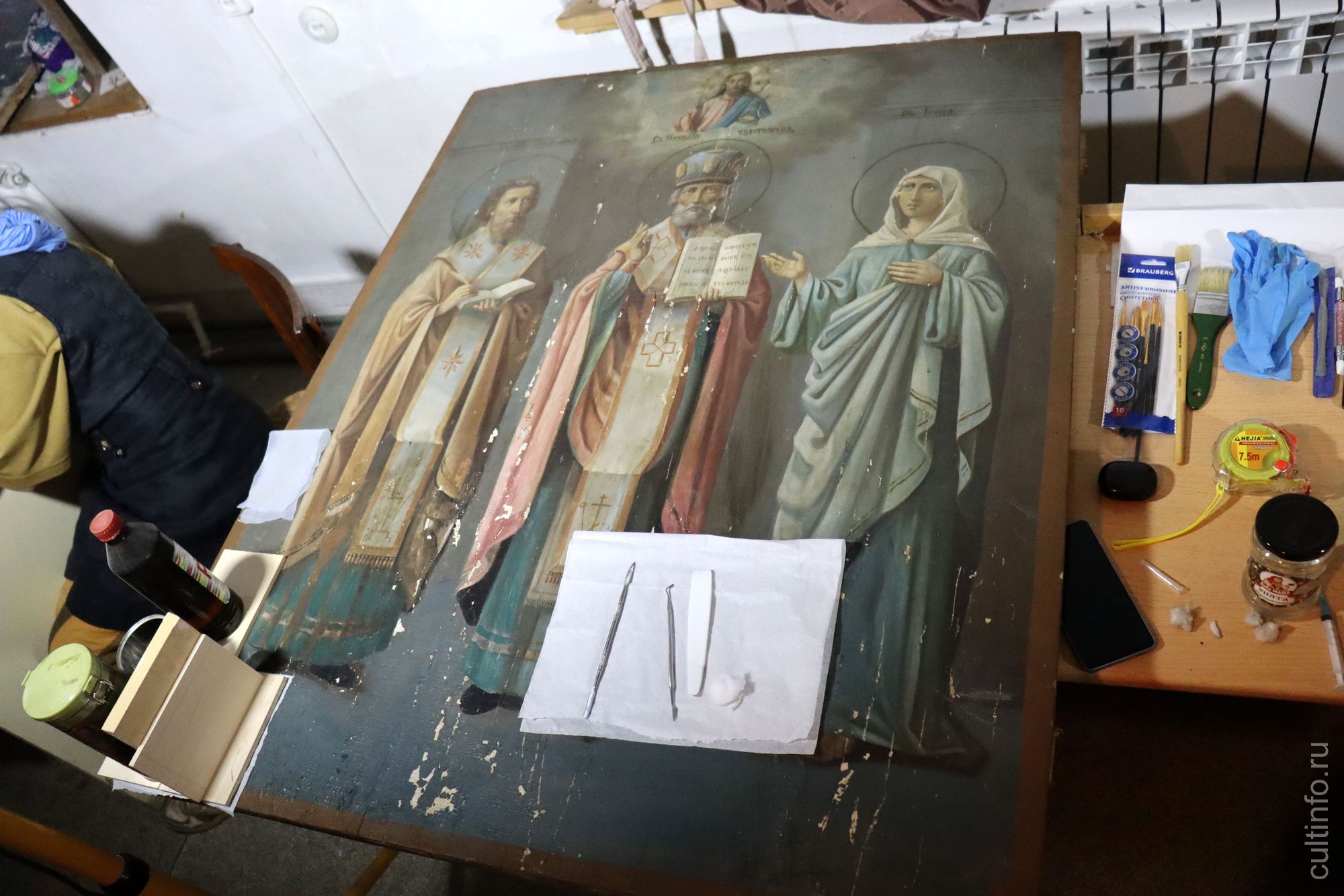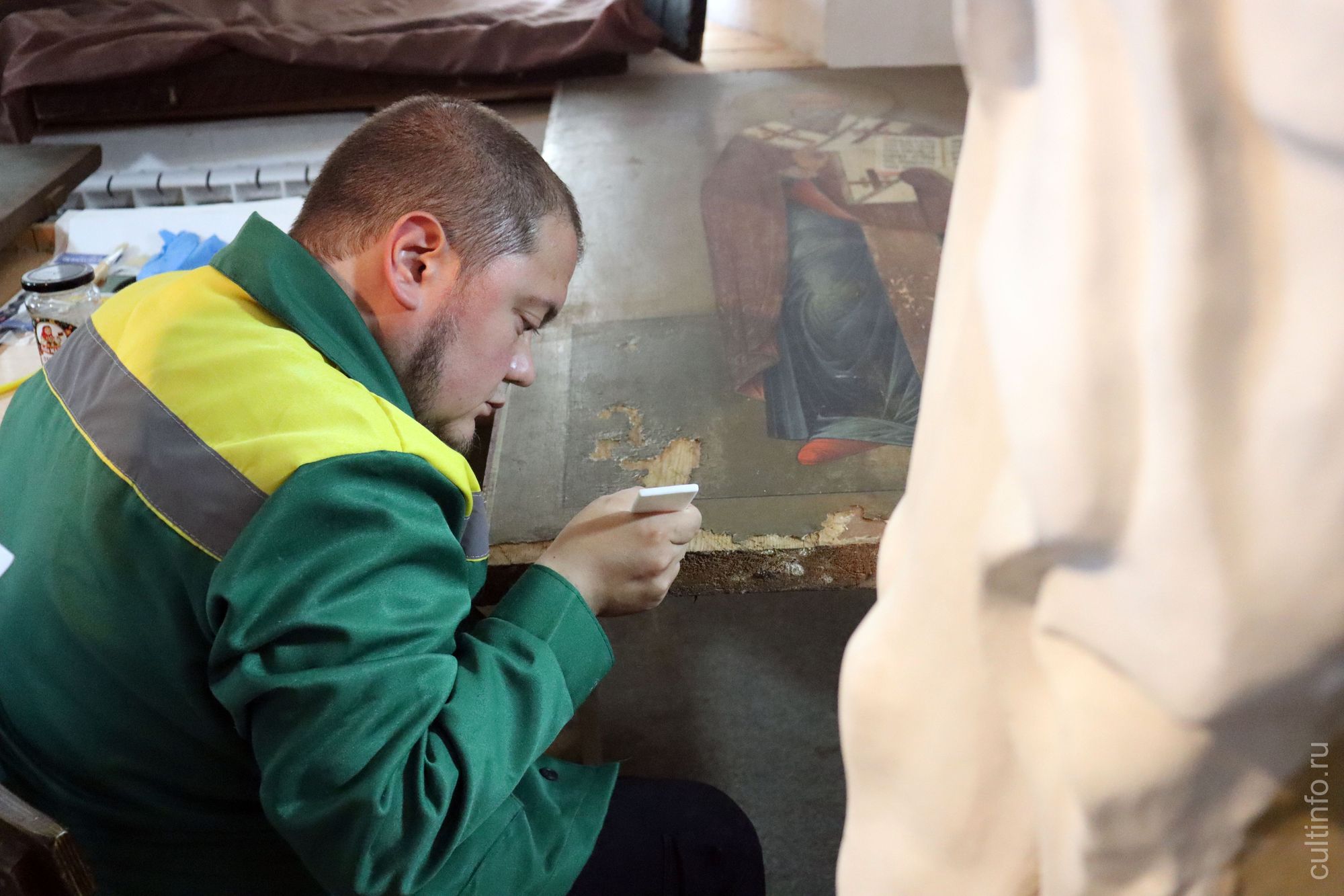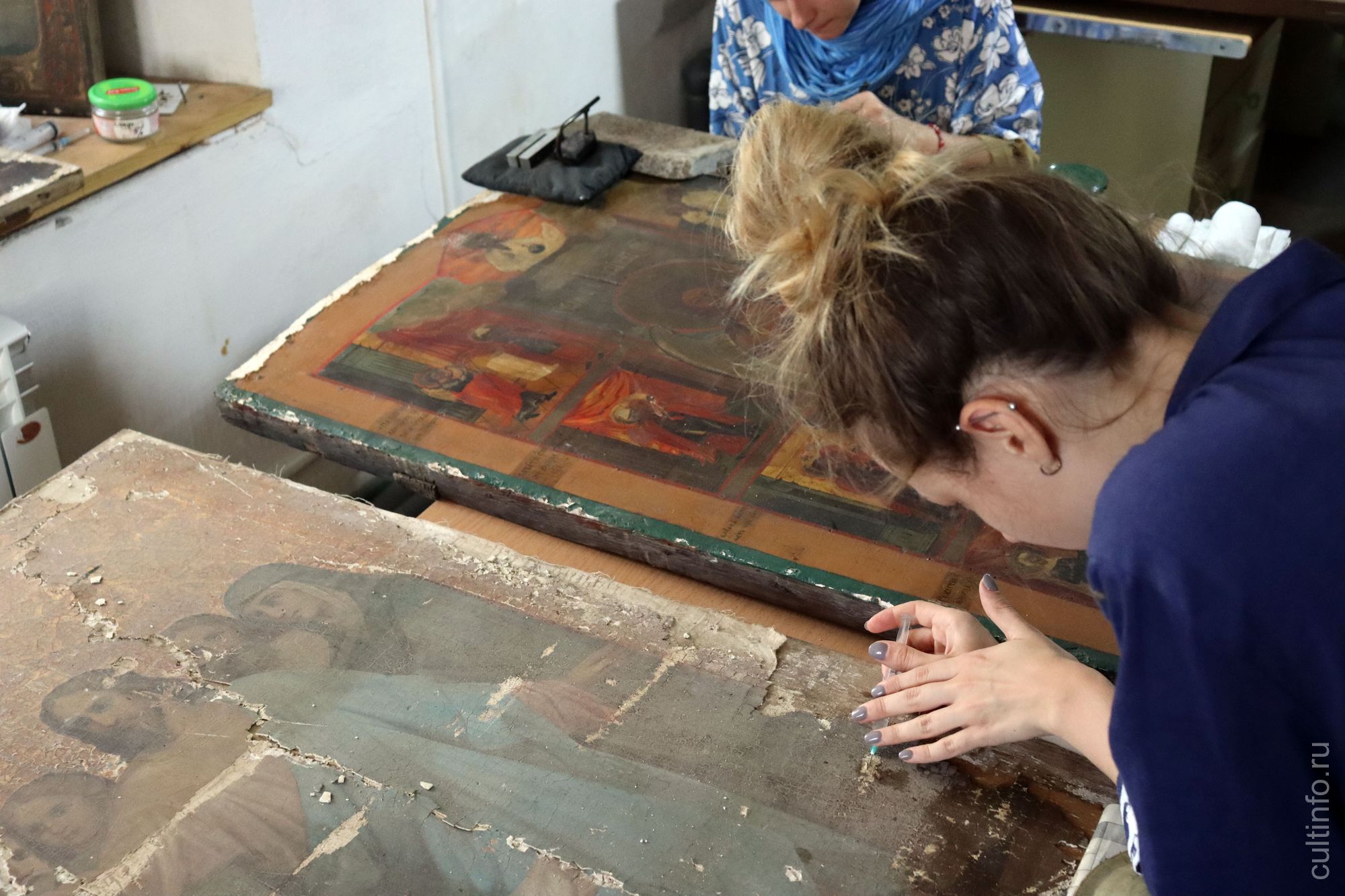«Провожу работы по укреплению красочного слоя. Прокладывался спиртовой раствор, а после этого клеевой раствор из осетра. И таким образом укреплялись деформированные участки. Работы предстоит много, а времени мало», – говорит Анастасия.