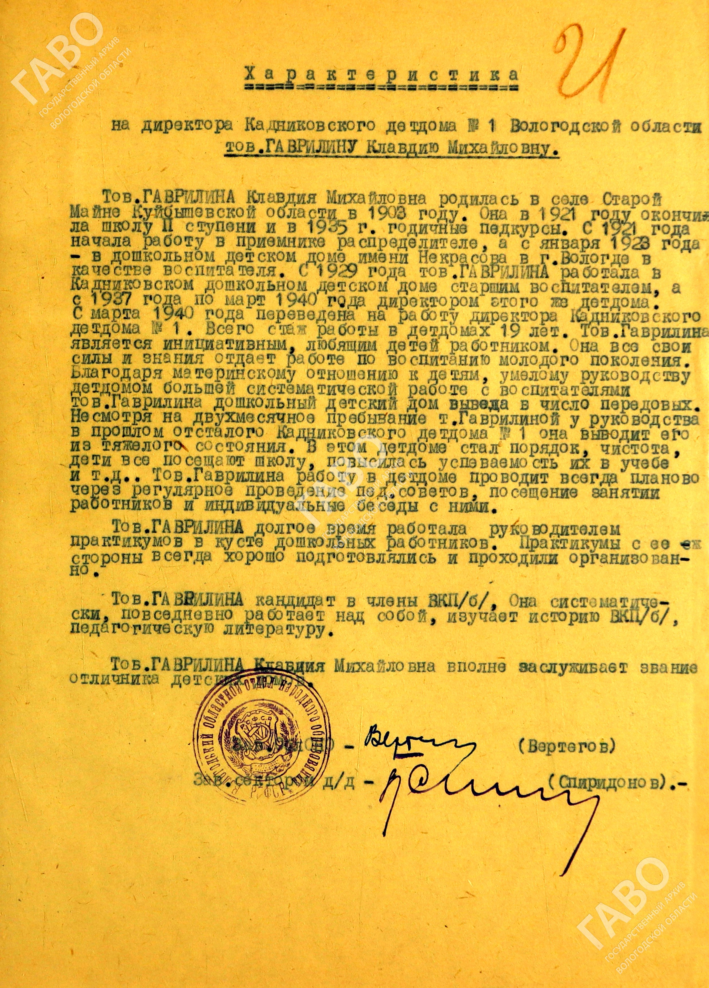 В настоящее время в Государственном архиве Вологодской области формируется личный фонд Татьяны Томашевской, первой учительницы музыки Валерия Гаврилина. Среди документов встречаются заметки о композиторе и его фотографии.