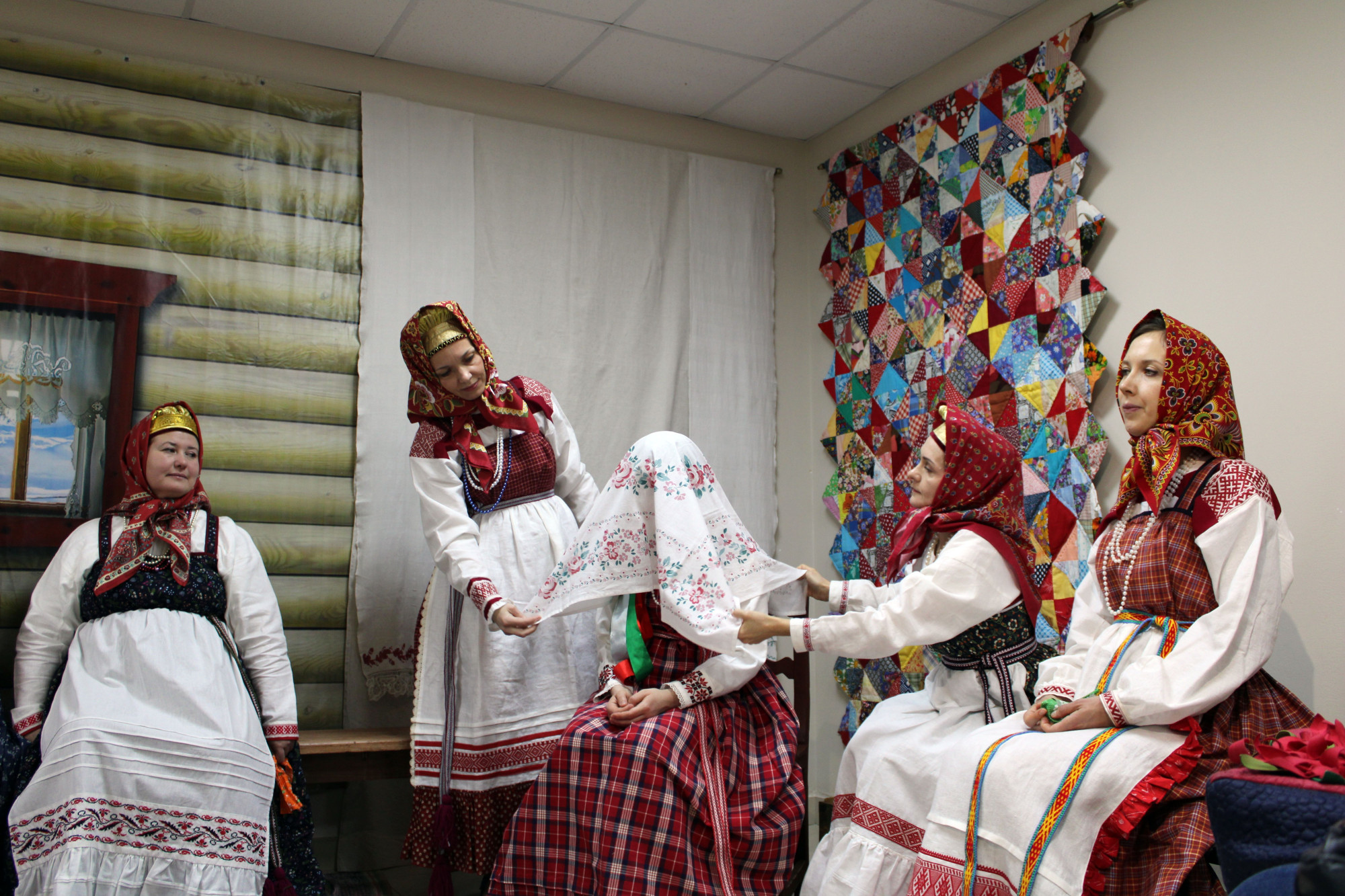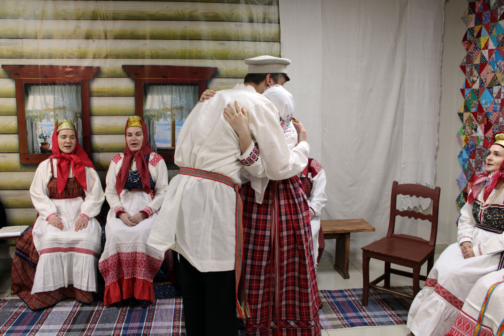 Зрители узнают, кто такие праворушница и леворушница, увидят, как наряжали невесту, и услышат, как припевали молодых[П1] (пели старинные причеты).