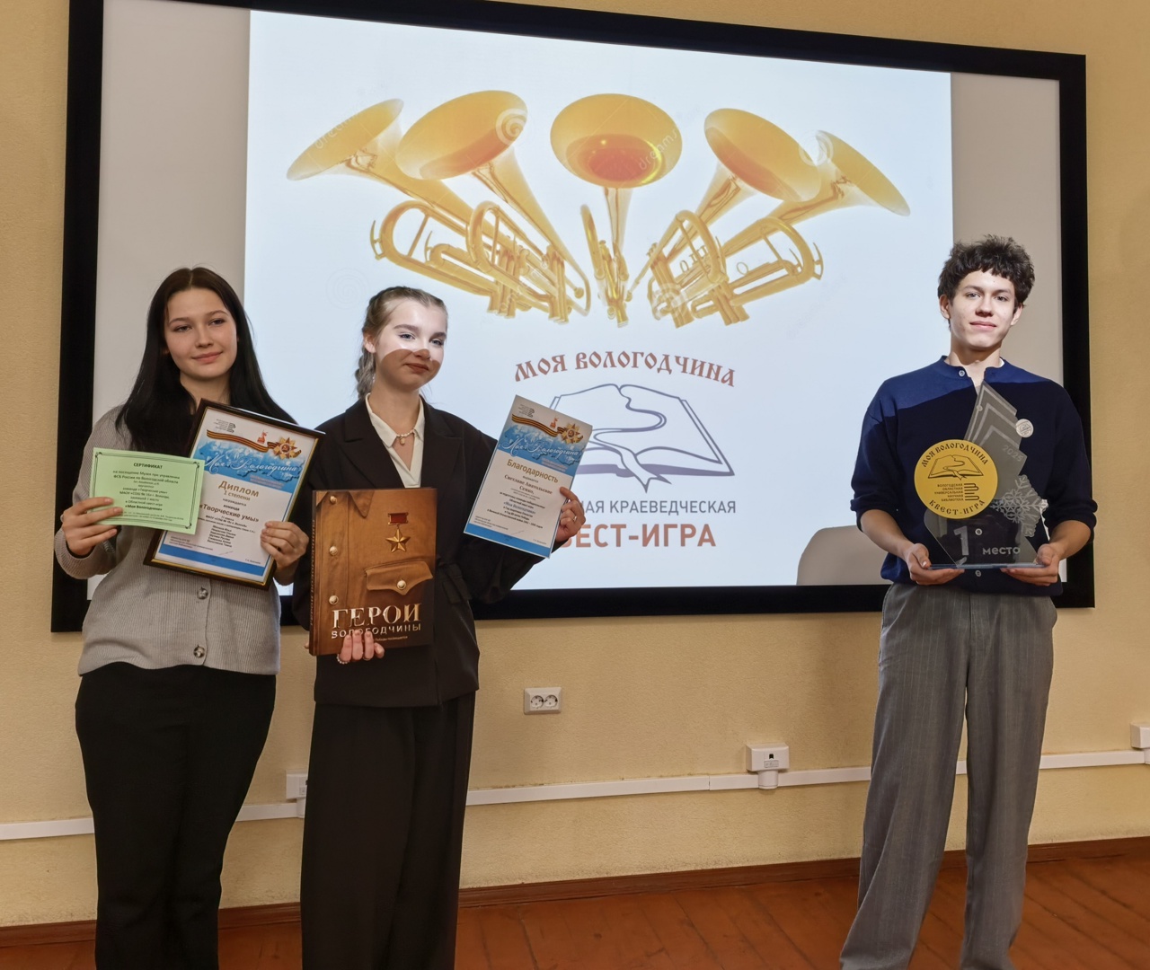 – 1 место: школа № 15 им. С. Преминина Великоустюгского округа (команда «Наследники Победы»),