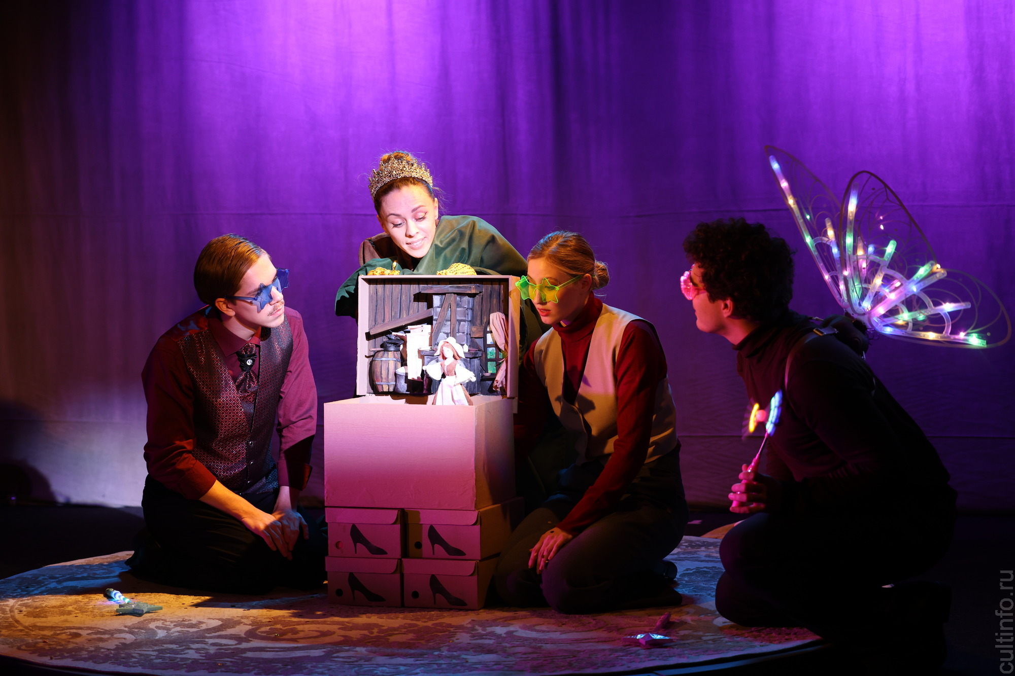 Спектакль полон неожиданностей и юмора. К примеру, зритель не может удержать смех, когда вместо прекрасной феи-крестной появляется фей-крестный в нелепых очках и с крылышками за спиной – эта условность тоже является особенностью метода необычного психолога.