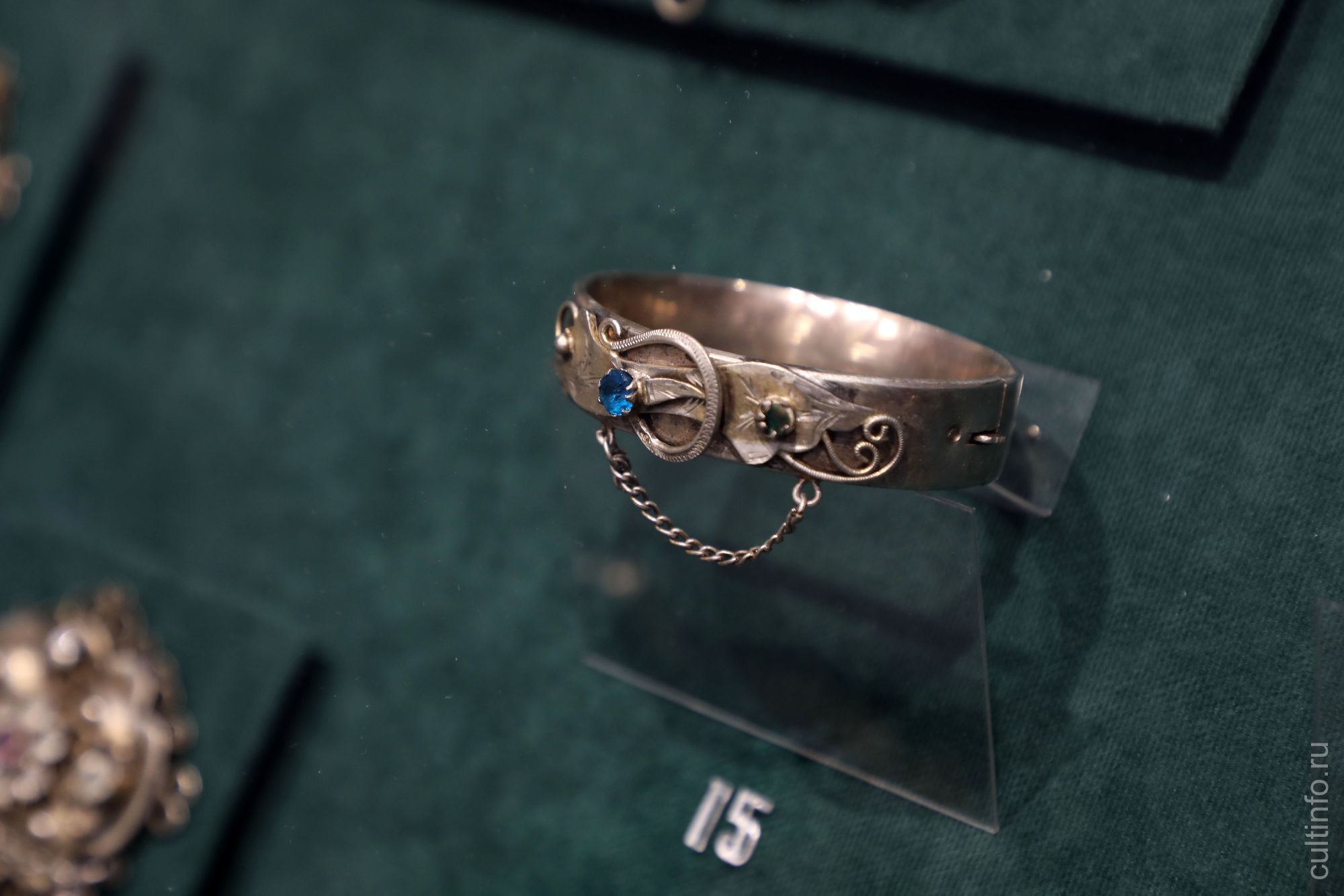 Поверх фибулы надевался весь набор серебряных украшений из разного рода цепочек, монетных рядов. Самые поздние по происхождению – ряды из царских монет, которые вышли из употребления в советское время. Можно увидеть на выставке и ряд голландских монет из Брабанта.