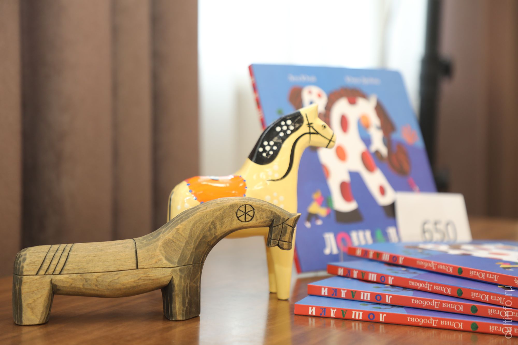 «С французского языка слово «сувенир» переводится как «воспоминание», то есть это предмет, с которым связаны отдельные воспоминания. Из Швеции, где я жила и стажировалась три месяца, я привезла лакированную игрушку-лошадку. Это был даларнский конь – по названию места Даларна на западе Швеции. Он является символом Шведского королевства и одним из самых популярных местных сувениров. Долгое время эта лакированная лошадка стояла у меня за стеклом, пока сын не решил с ней играть. И книжка стала откликом на то, как игрушка становится подарком, воспоминанием о месте, где ты был, и потом – снова игрушкой», – рассказала Лета Югай.