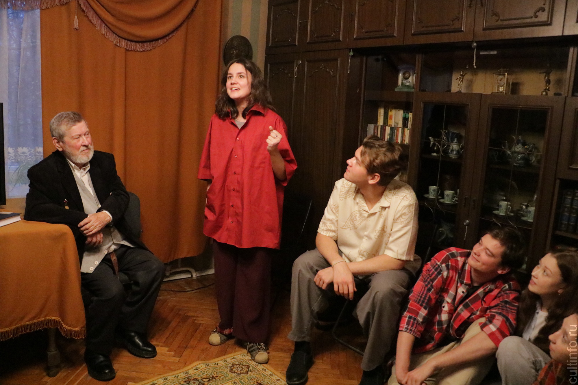 В подарок для гостя выступили будущие артисты – студенты 3 курса театрального отделения Вологодского колледжа искусств, занимающиеся у Ларисы Афанасьевой. Ребята представили музыкально-литературную композицию на стихи Николая Рубцова.