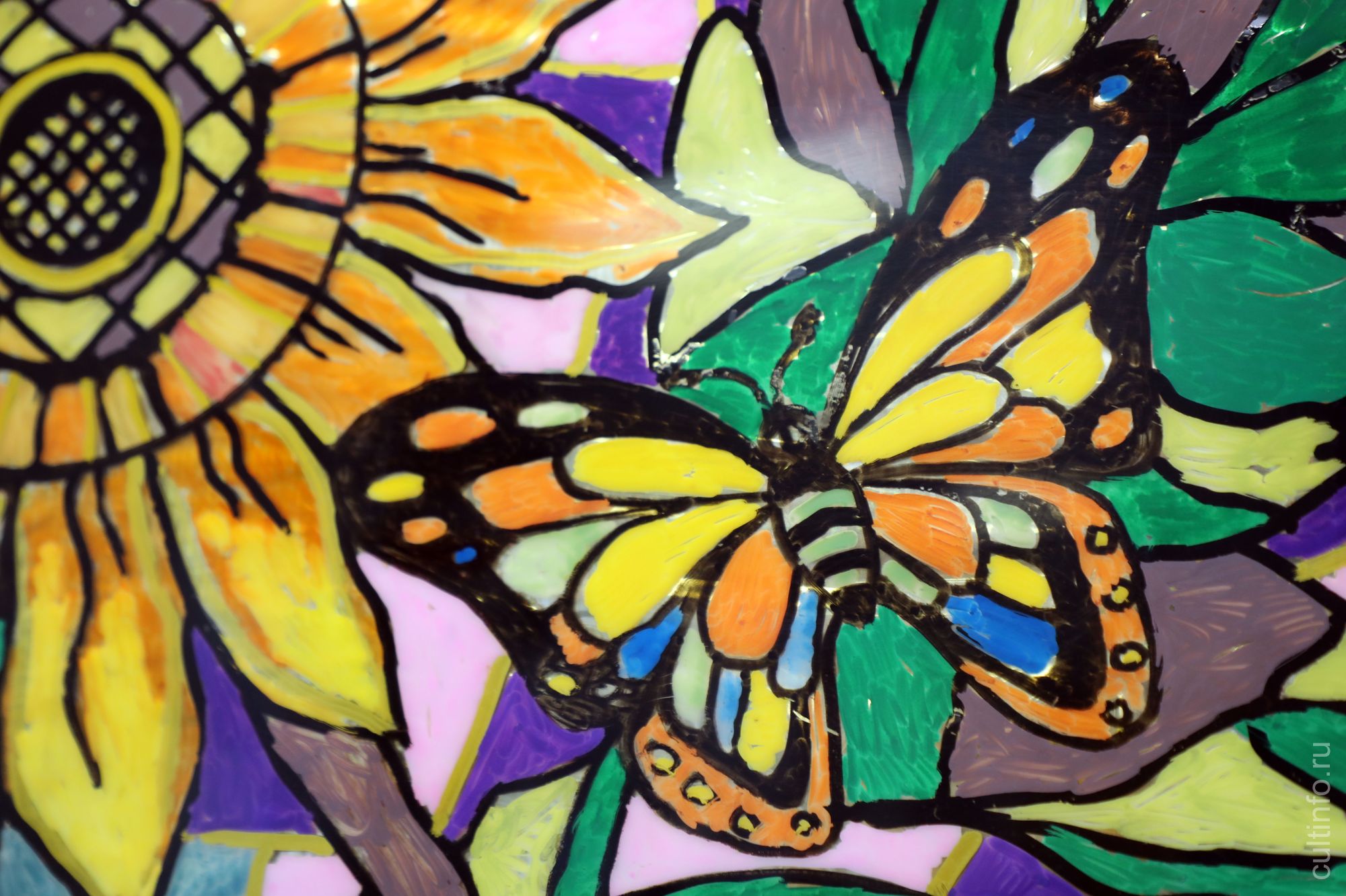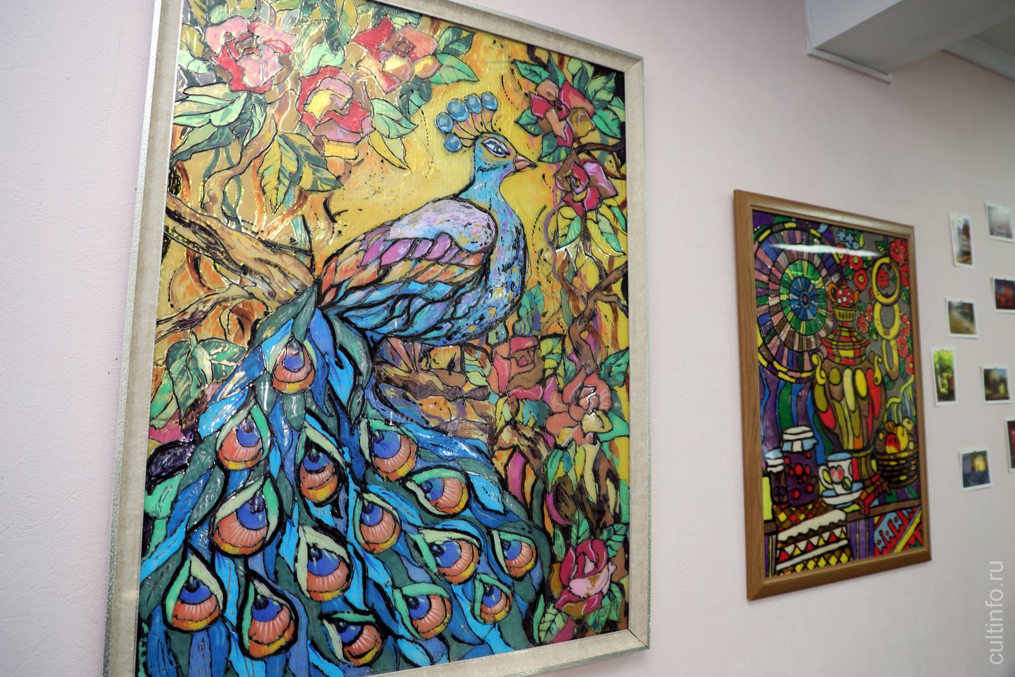 Олег Малинин работает специалистом Юношеского центра имени Владимира Тендрякова и проводит творческие занятия для всех желающих. Серия работ, имитирующих витражи, родилась у него после проведения мастер-класса по росписи по стеклу.