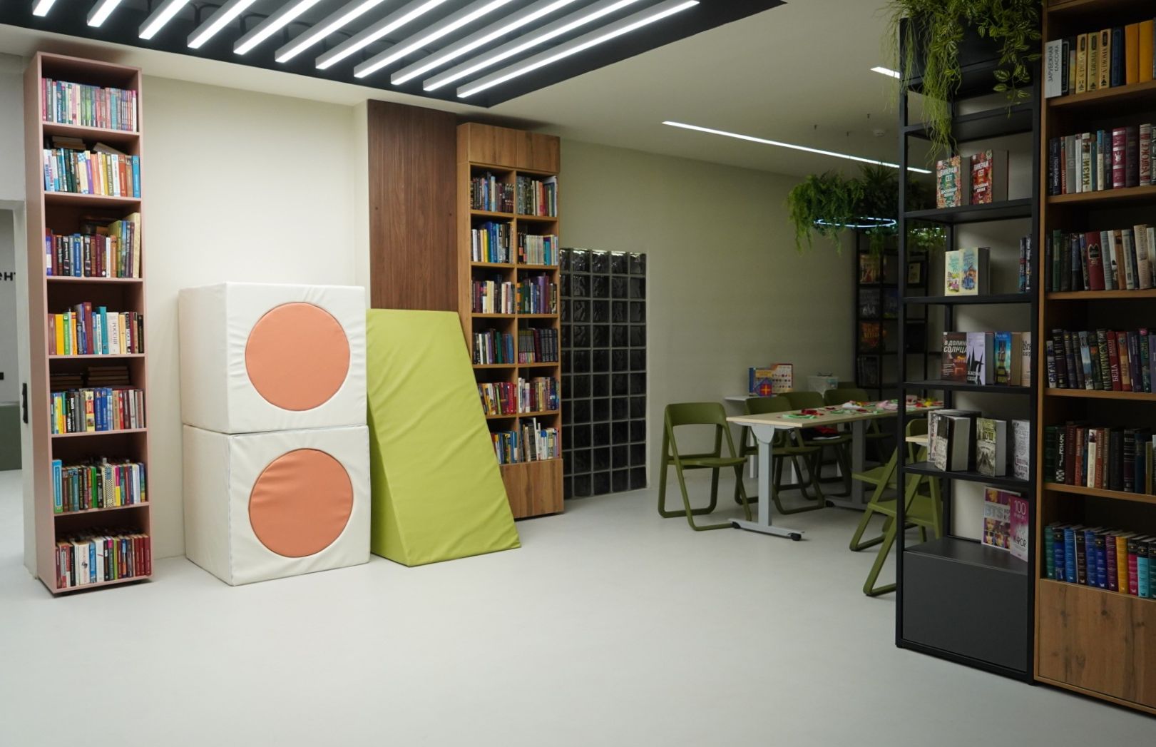 Библиотека получила современное оборудование, включая проекторы, звуковую систему и персональные компьютеры. Детский зал оснастили интерактивными элементами, включая конструкторы, модульные столы, пуфы и сцену с грифельной стеной для рисования. Взрослой аудитории отвели отдельное пространство для проведения соответствующих мероприятий.