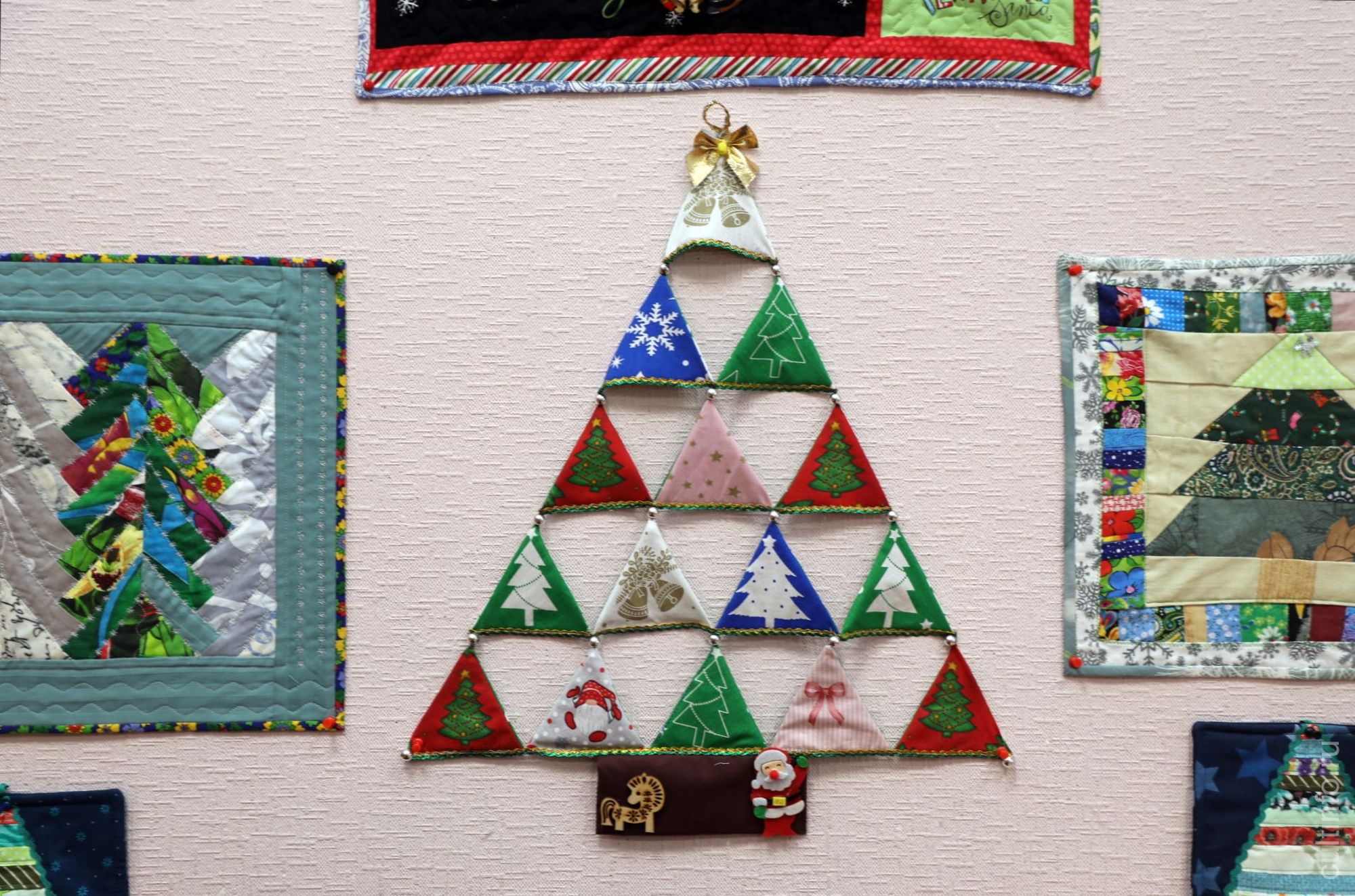 Изделия на тему новогодней елочки и зимних праздников создали мастерицы клуба «Горница» под руководством Надежды Калугиной. Объединение существует при центре «Забота» больше 10 лет. Участниками его становятся те, кто прошел трехлетний курс обучения лоскутному шитью у Надежды Валентиновны. Выпускница Московской государственной академии физической культуры, она неожиданно для себя стала заниматься рукоделием в стиле пэчворк, а в 2013 году начала преподавать лоскутную технику.