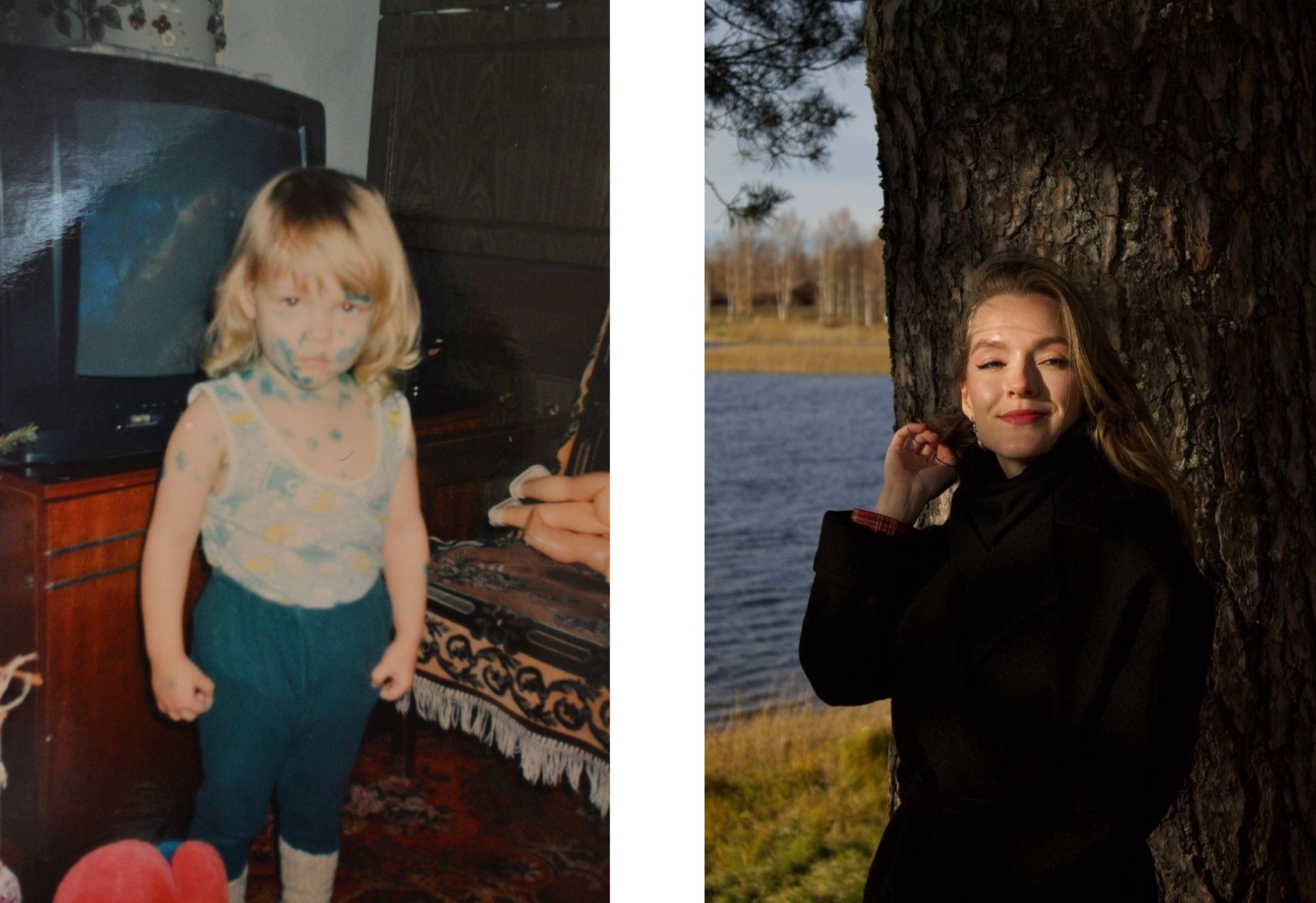 Кроме волшебного Деда у меня всегда был еще самый настоящий, который устраивал приключения для любимой внучки на ровном месте. В мои 2,5 года в канун праздника я заболела ветрянкой. И стоило родителям оставить меня с дедушкой наедине на пару часов – у меня появилась маскировка под ёлку. Видимо, чтобы я могла беспрепятственно прятаться под дерево и отрезать себе лишние локоны волос, чем иногда грешила. Даже колготки на мне были в тот день зеленые. Родители запечатлели это чудо на пленочный фотоаппарат и оставили воспоминание на всю жизнь. На фото – грозная зеленая левая бровь: дедуля постарался, не пожалел зеленки для внучки. У меня до сих пор остался шрам на левой брови от ветрянки и веселая история, которую мама рассказывает мне со смехом каждый год.