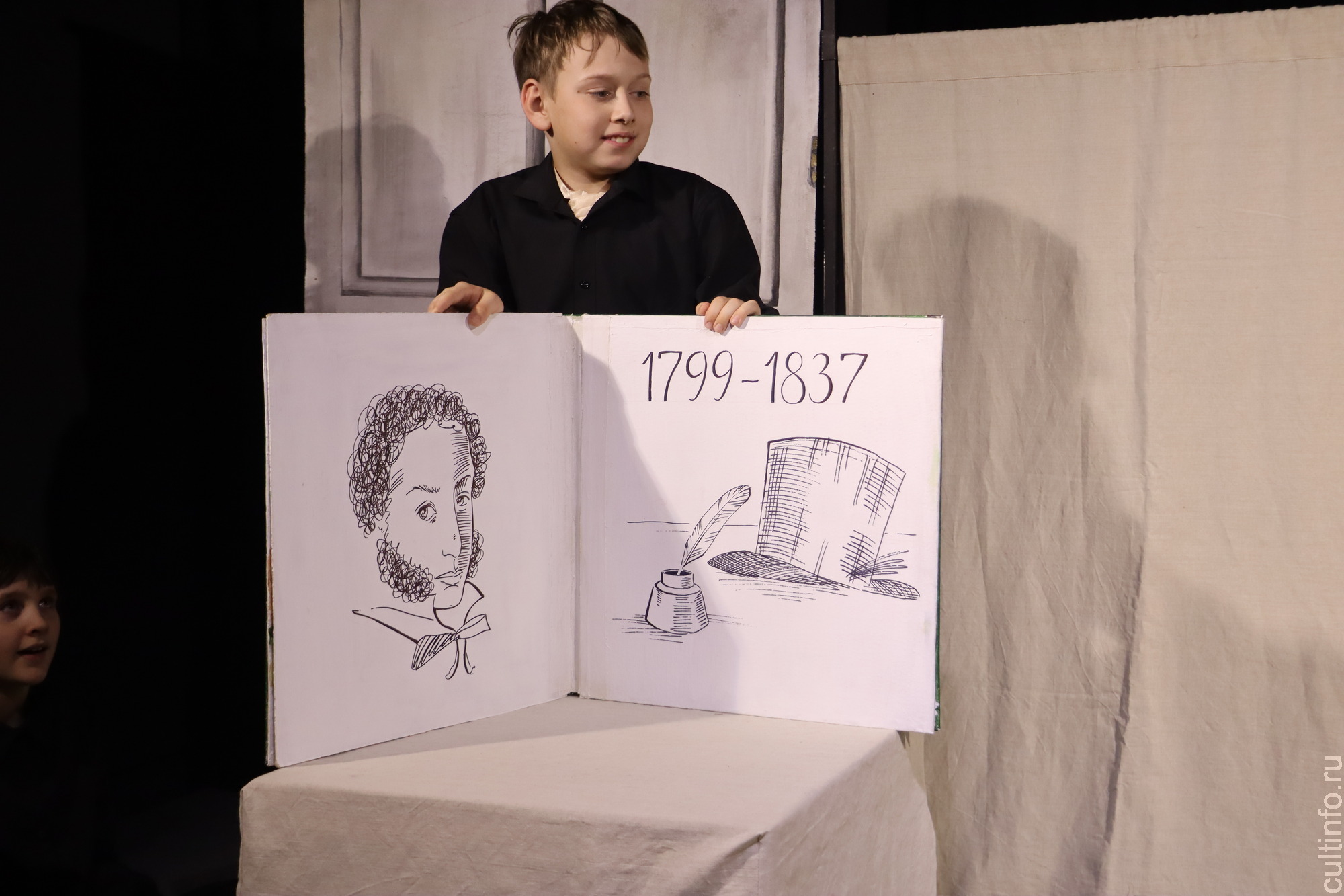 Ребята, которые занимаются второй год, представили премьеру по творчеству русского классика «Про Пушкина? Легко!» (0+). За полчаса юные артисты успевают кратко, но емко рассказать биографию Александра Пушкина. Сюжет спектакля прост: компания современных детей решила поиграть в школу и выбрала урок литературы. Вместе они вспоминают главные события из жизни великого классика – от рождения до дуэли с Дантесом. Здесь и няня Арина Родионовна, и лицейская пора, и экзамен у великого Державина, и ссылки, и встреча с будущей супругой, и семейная жизнь... С шутками, песнями и куклами ребята рассказывают о Пушкине и завершают историю современной песней «Черная речка» кабаре-бэнд «Серебряная свадьба». Артисты используют несколько видов кукол – пальчиковые, планшетные и тростевые. Как признаются сами ребята, им было очень интересно работать над этой историей. Кому-то запомнилось, как учили фразы на французском, кого-то поразила драматичная сцена гибели поэта, а кто-то признался, как непросто сначала было справляться с тростевой куклой.