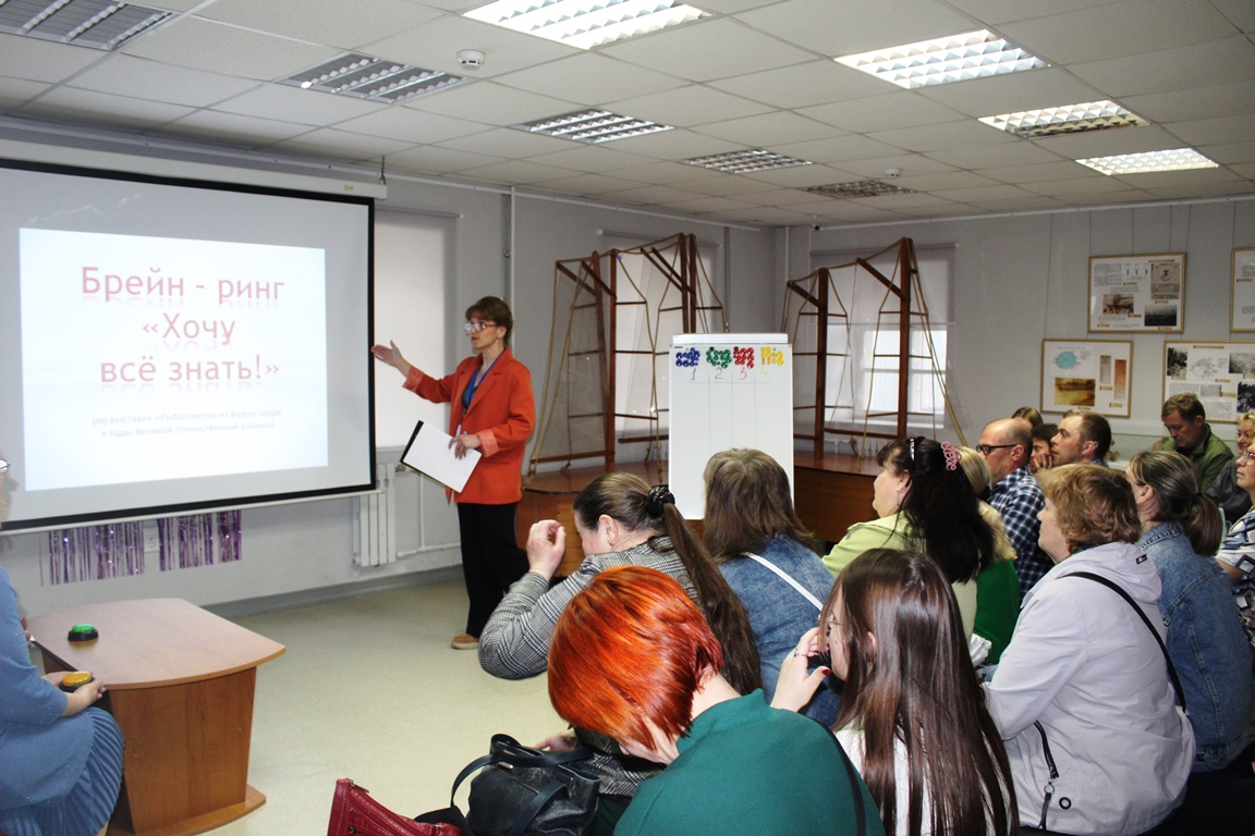 Далее гостей ждал Музей Белого озера. Здесь состоялось интеллектуальное состязание. В год 80-летия Победы в музее открылась выставка, посвященная заслугам белозерских рыбаков в годы войны. В экспозиции представлены материалы о рыболовецких династиях, а также личные истории, воспоминания и артефакты жителей города и Белозерского округа. На этой площадке во время брейн-ринга «Хочу все знать» выбрали самого быстрого, внимательного и умного участника.