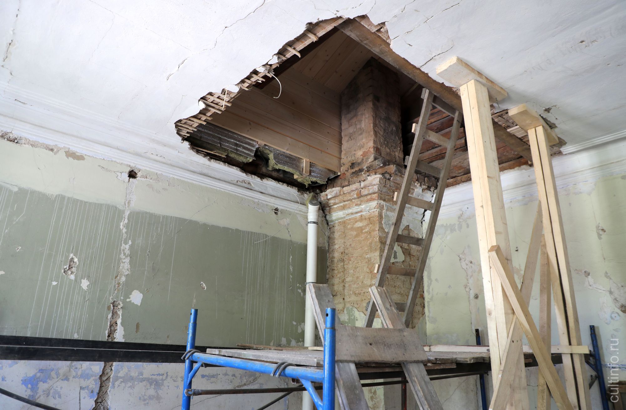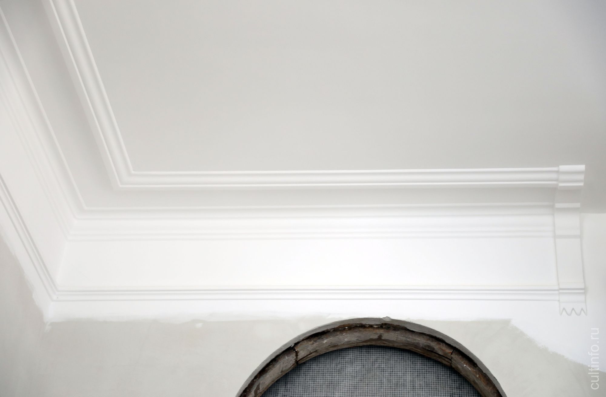 «Практически полностью сняты штукатурные слои, находившиеся в плохом состоянии. Известковыми составами воссоздали потолочные розетки, восстановили утраченные фрагменты потолочных тяг и сохранили оставшиеся. Сейчас принимается решение по стенам: покрасить ли их или там будут обои», – пояснил директор ООО «Вологодские реставраторы» Владимир Новосёлов.