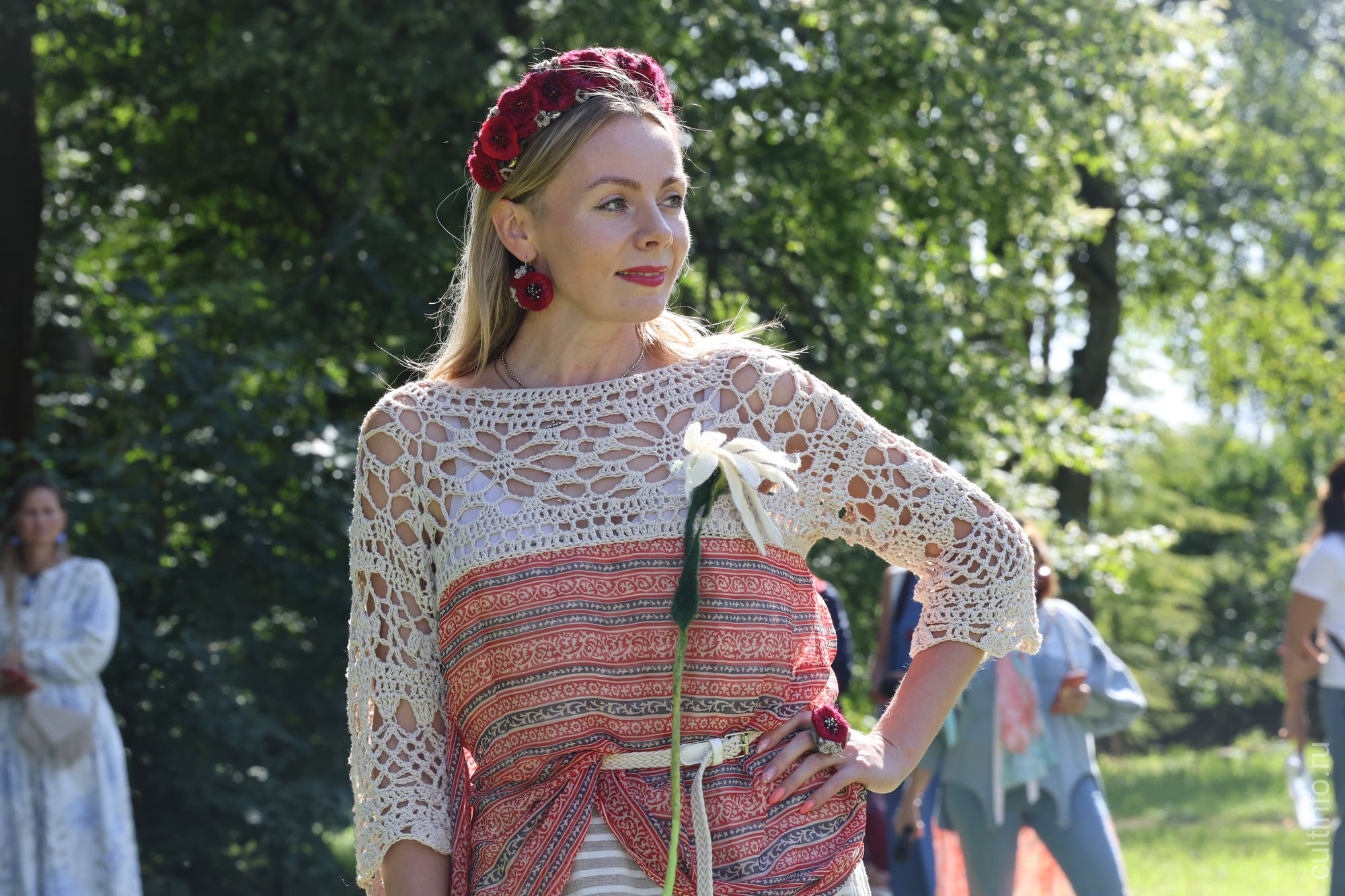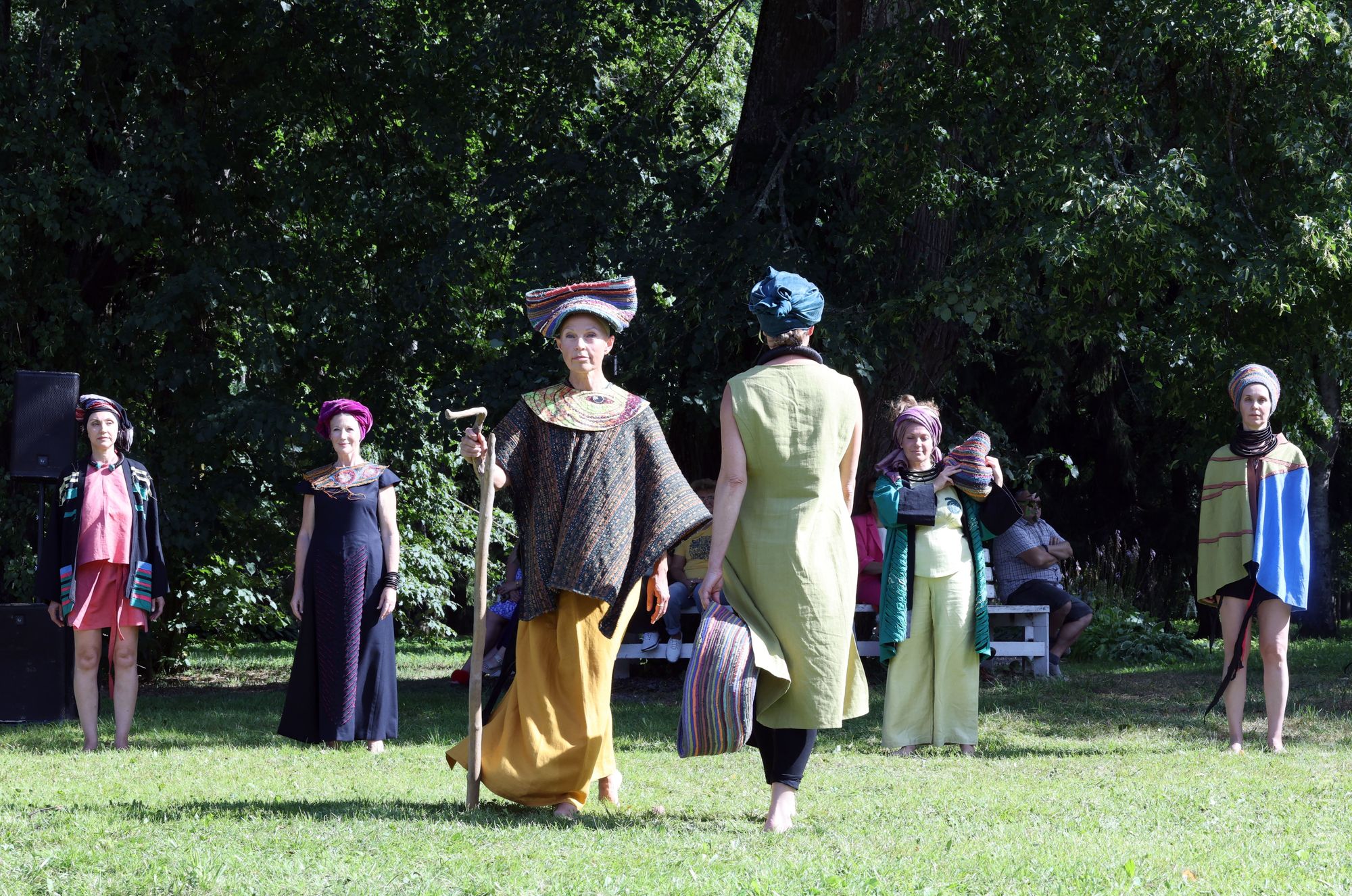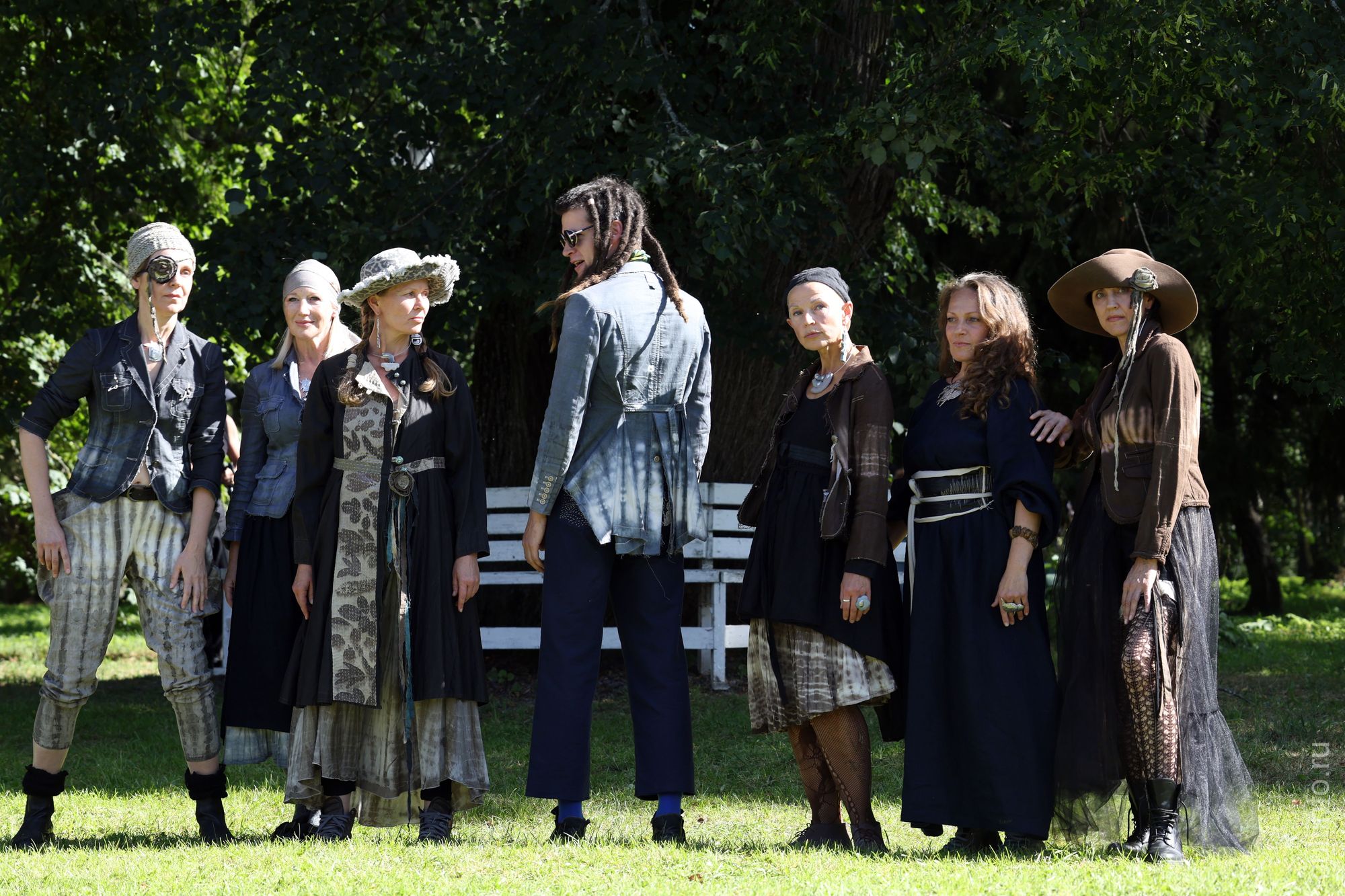 У главного усадебного дома состоялись модные показы. Шесть модельеров представили свои коллекции, в которых соединились африканские мотивы, аристократизм и пиратская тема, впечатления от путешествий и плоды совместного вязания с мамой.