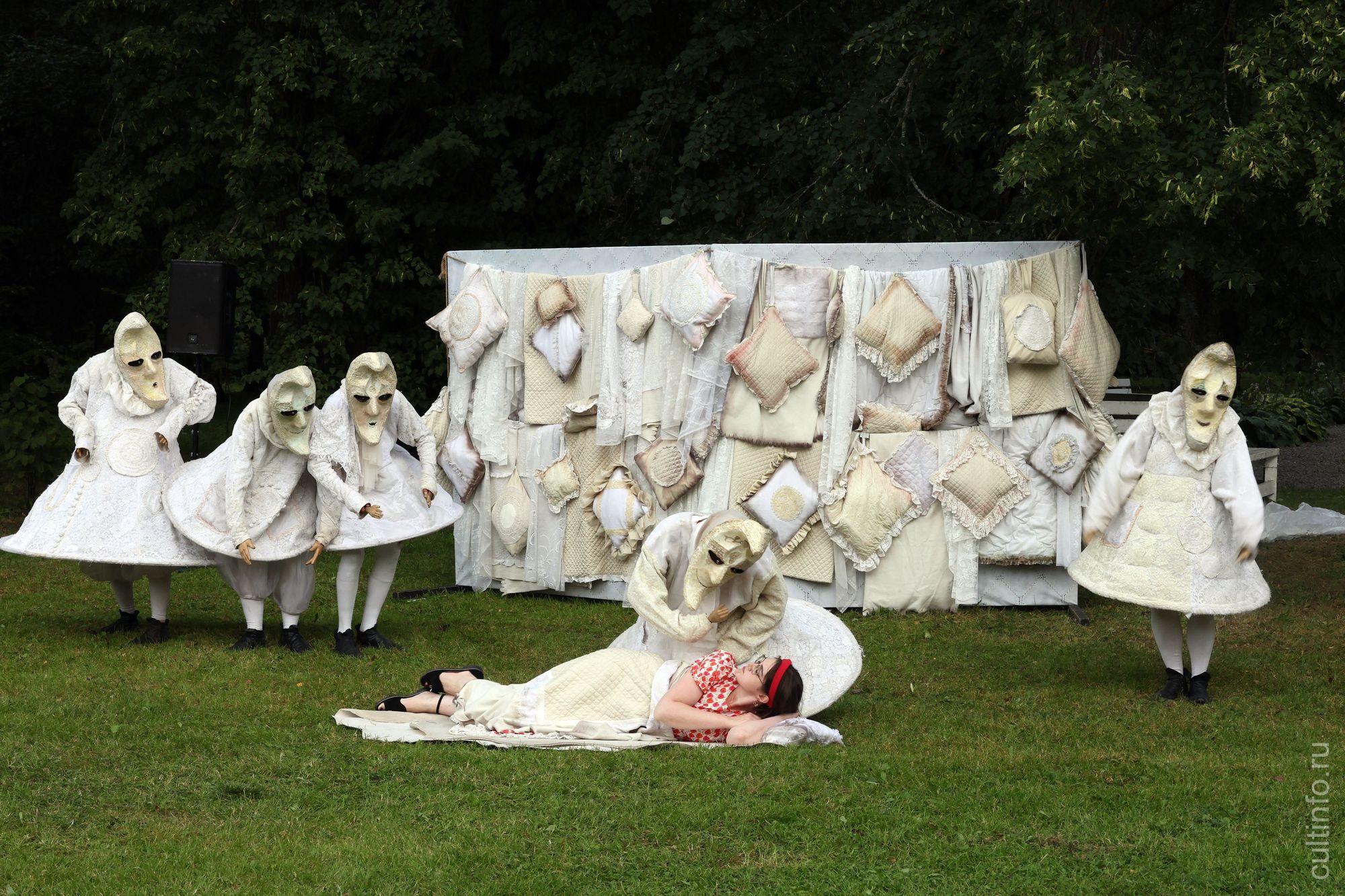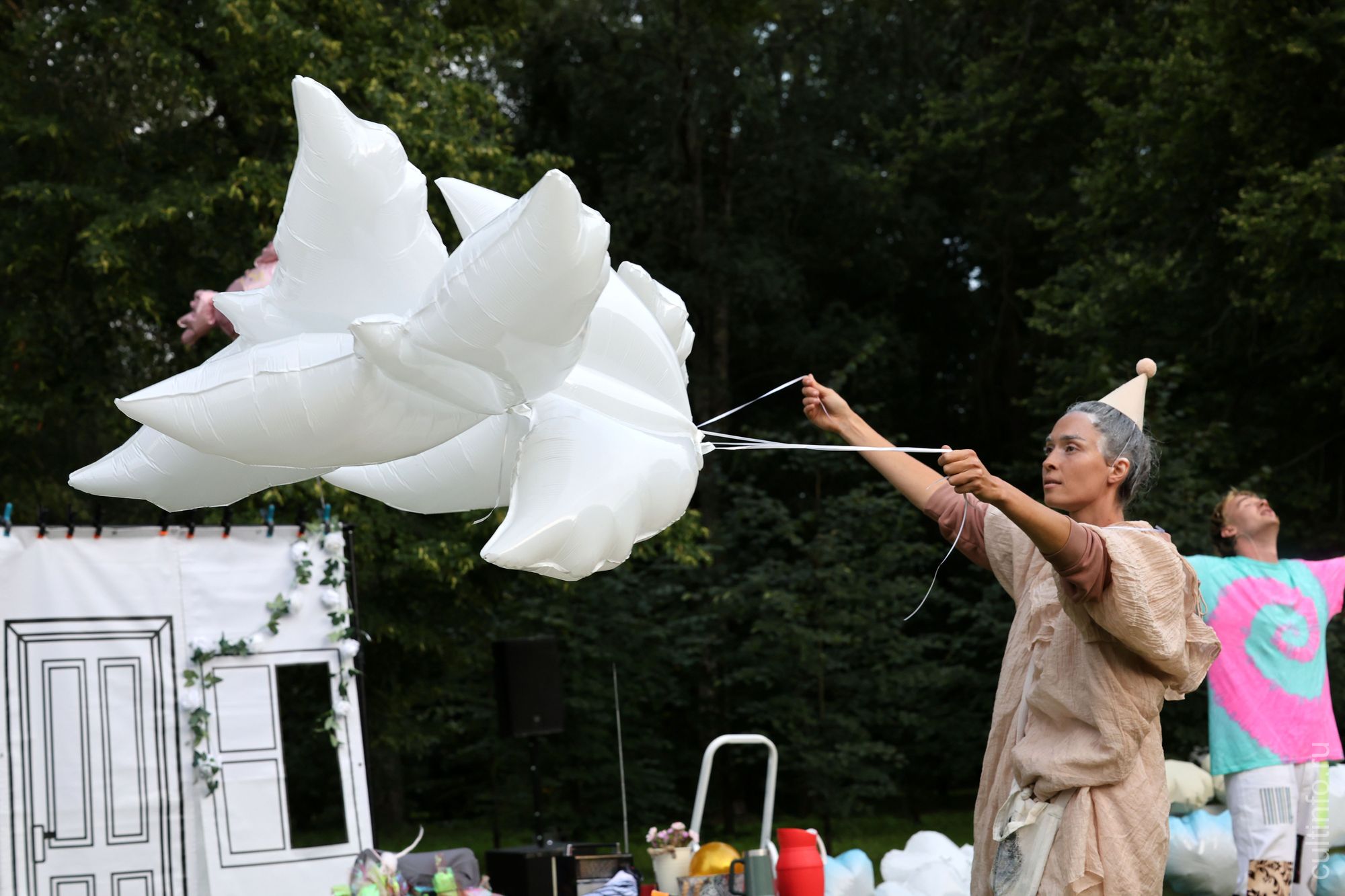 «Это уникальное даже для нашей 30-летней практики явление, – говорит художественный руководитель Санкт-Петербургского профессионального уличного театра «ПЭЖО», известная как «Матушка Медоуз», Анна Шишкина. – Это постановка в жанре сайт-специфик, и она может существовать только в стенах этой усадьбы, с ее предметами в качестве реквизита. Проект на антресолях усадьбы получился нежный, связанный с историей. Конечно, это не история усадьбы, это её сны, галлюцинации. В спектакле почти нет текста, но звучит музыка, в каждом пространстве – своя. Ее писала композитор Ефросинья Скотникова. Художники оформляли площадки».