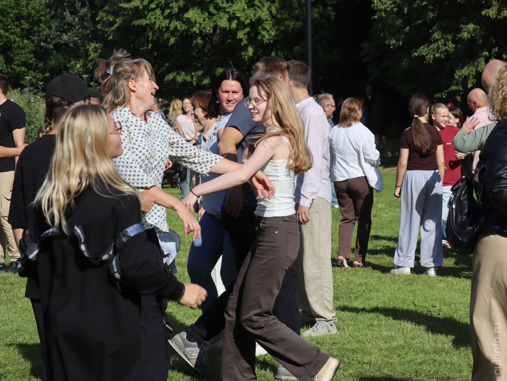 Вместе с петербургской группой «Отава Ё» гости фестиваля разучивали краковяк, польку, «Чижика» и другие танцы.