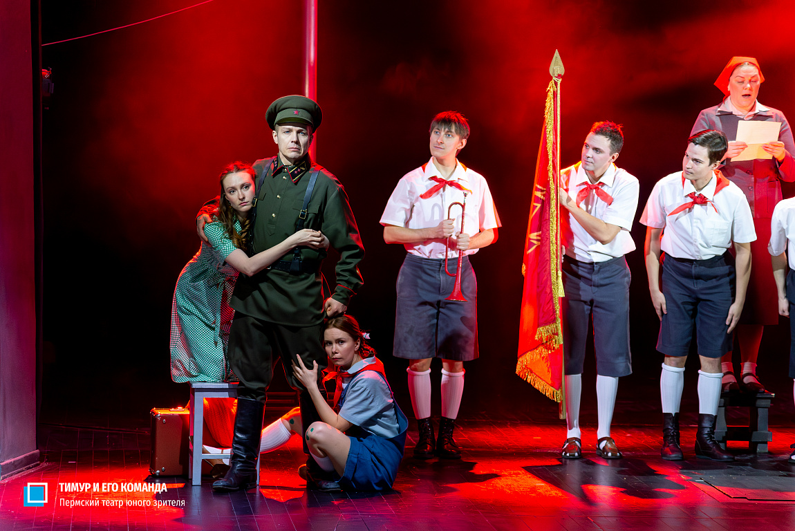 «Тимур и его команда» (12+) по повести Аркадия Гайдара. Спектакль предназначен для коллективного просмотра школьниками и билеты на него в открытую продажу не поступают.
