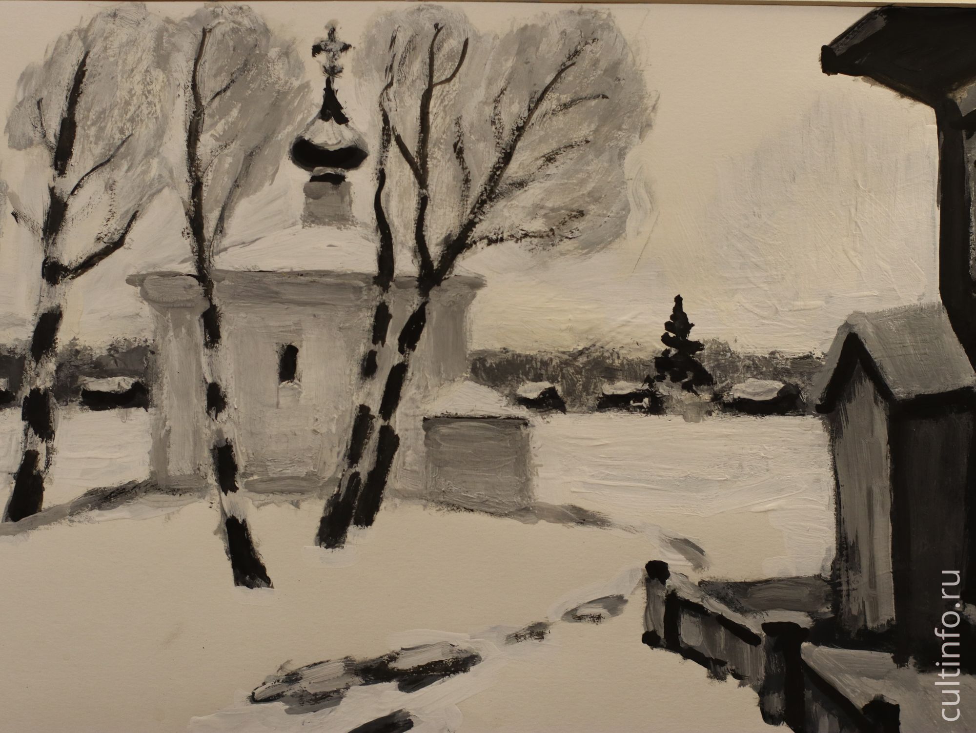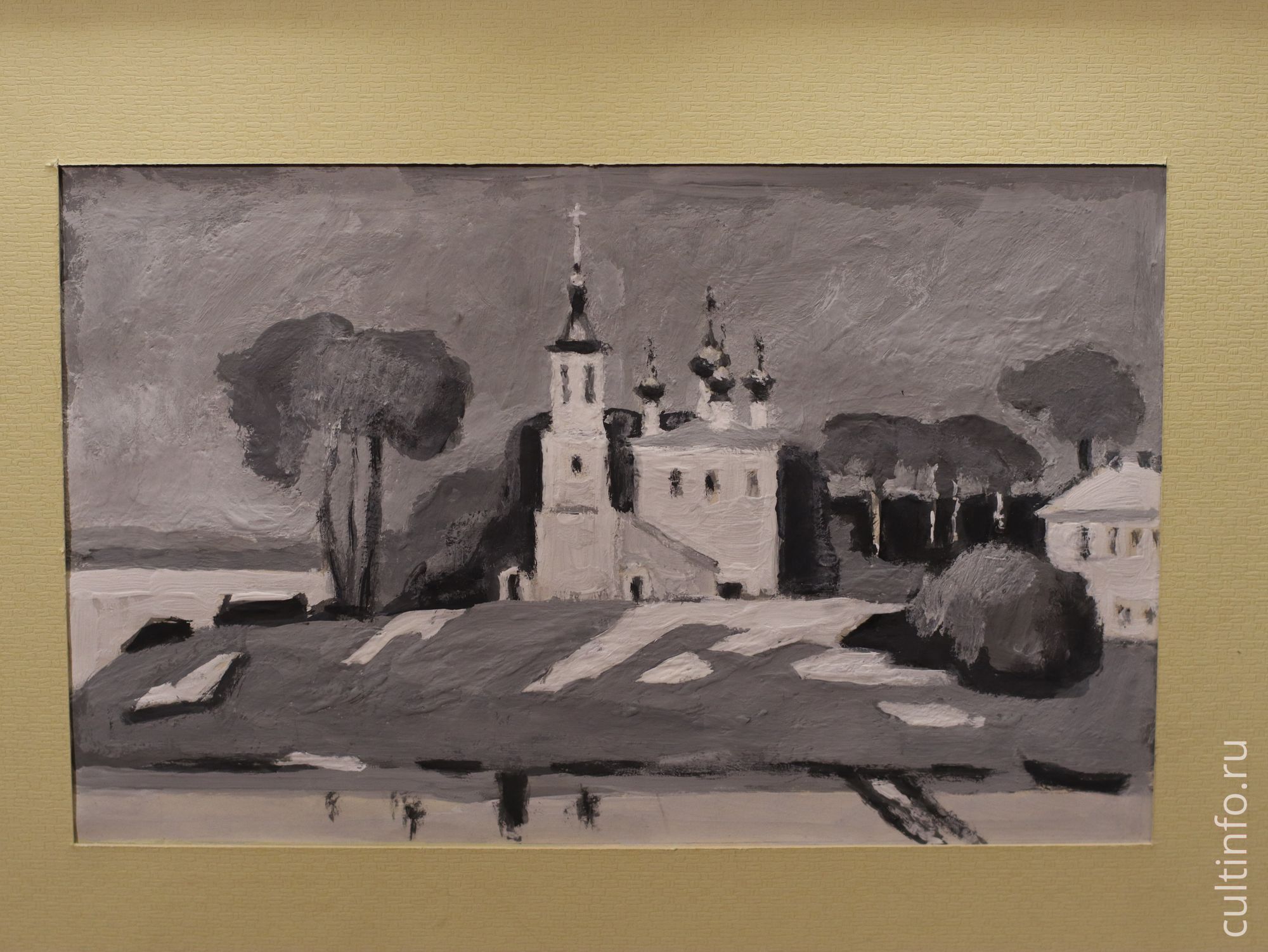 Художник тщательно отбирал работы для выставки: сначала определял, какие картины подойдут для больших залов, а какие – для камерных пространств, сочетал живописные и графические произведения, чтобы передать атмосферу Вологды и окрестных мест. Отдельное место среди экспозиции занимает полотно с видом Ферапонтова монастыря – любимая работа Николая Шалаева.