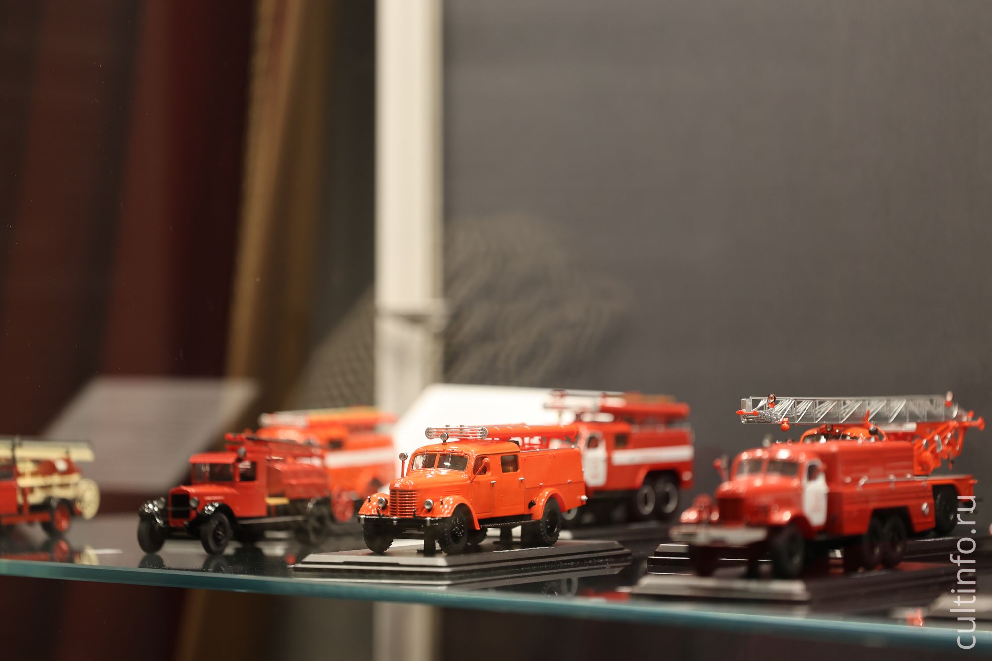 Второй зал – грузовики, пожарные машины, автобусы, троллейбусы, спецтранспорт, милиция и скорая помощь. Этот зал посвящен специальной технике – машинам-помощникам человека в разных сферах. Здесь в витринах можно увидеть машины, которые активно использовались на стройке – это была ведущая техника первой половины и середины ХХ века, которая участвовала в том числе и в послевоенном восстановлении страны; самые используемые модели советских грузовиков. Большую часть этого зала занимает пожарная техника и это неслучайно: отец коллекционера работал пожарным, семья какое-то время даже жила над пожарной частью в общежитии, и с самого детства эти машины привлекали внимание Сергея. Один из разделов посвящен автобусам и троллейбусам – самому популярному общественному транспорту в советское время. Многие здесь увидят знакомые марки автобусов – ЛиАЗ, ПАЗ и Икарус (единственные модели машин зарубежного производства, но пользовавшиеся большой популярностью в нашей стране). Здесь представлен и очень редкий двухэтажный троллейбус, который возил пассажиров только в Москве. Здесь есть и спецавтотранспорт – автомобили скорой помощи, милицейские машины.
