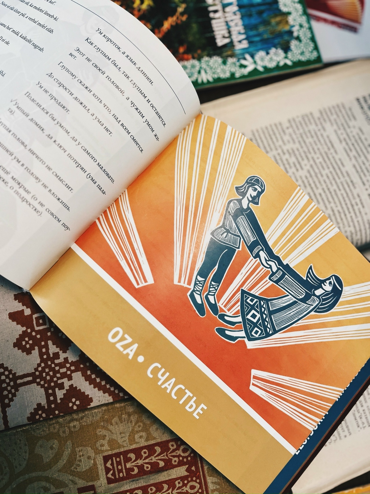 Выставка знакомит с лучшими образцами устного народного творчества – пословицами и поговорками, загадками, потешками, скороговорками. Например, в книге «Вепсские пословицы и поговорки» собрано более 770 народных изречений на вепсском и русском языках. Издание включает разделы о семье, труде, доме и речи, сохраняя рифмованную структуру и аллитерации оригинального языка.