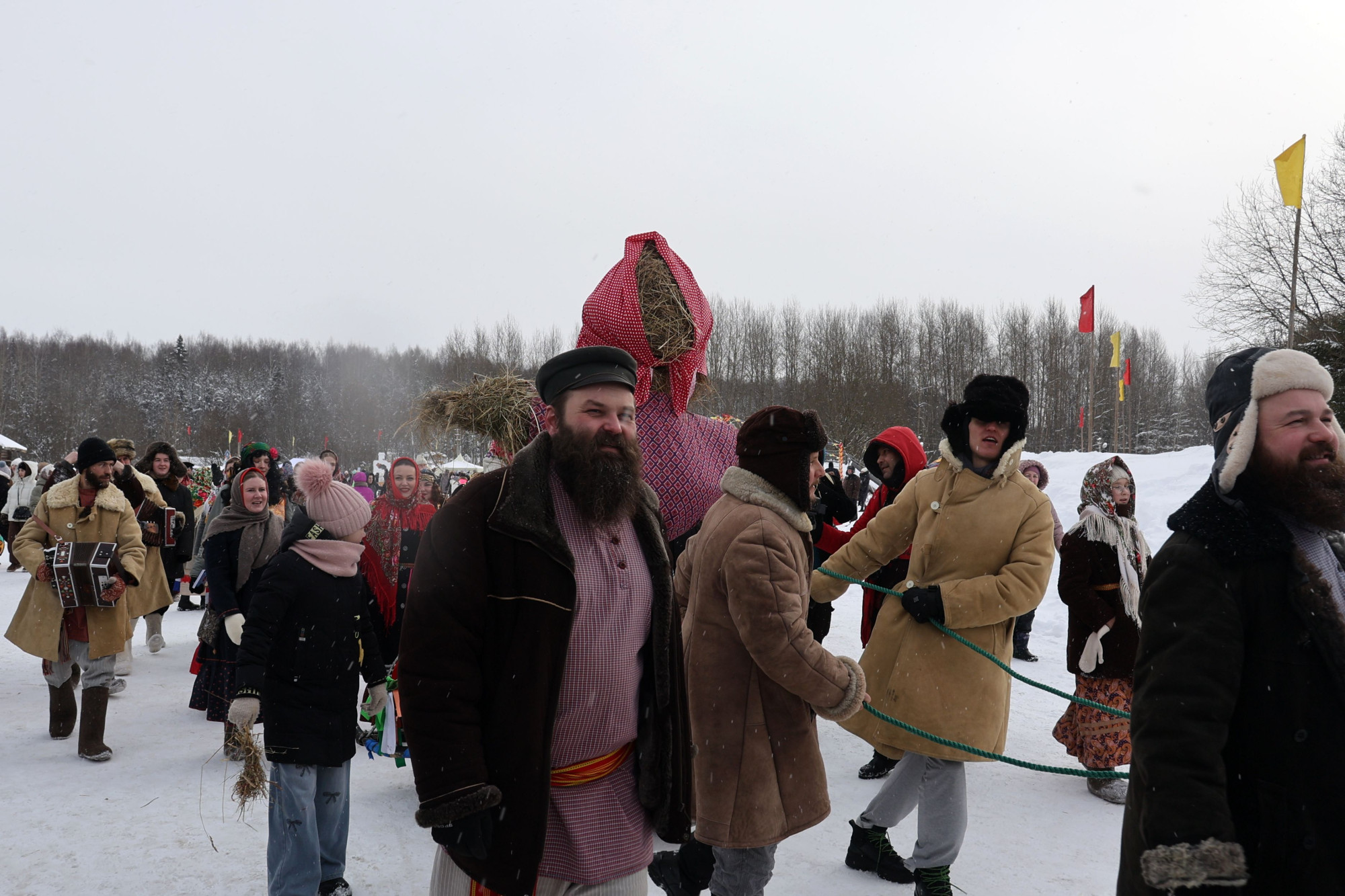 В масштабном масленичном шествии приняли участие сотрудники и волонтеры музея, фольклорные коллективы и гости праздника. Кульминацией программы традиционно стало сжигание чучела Масленицы.