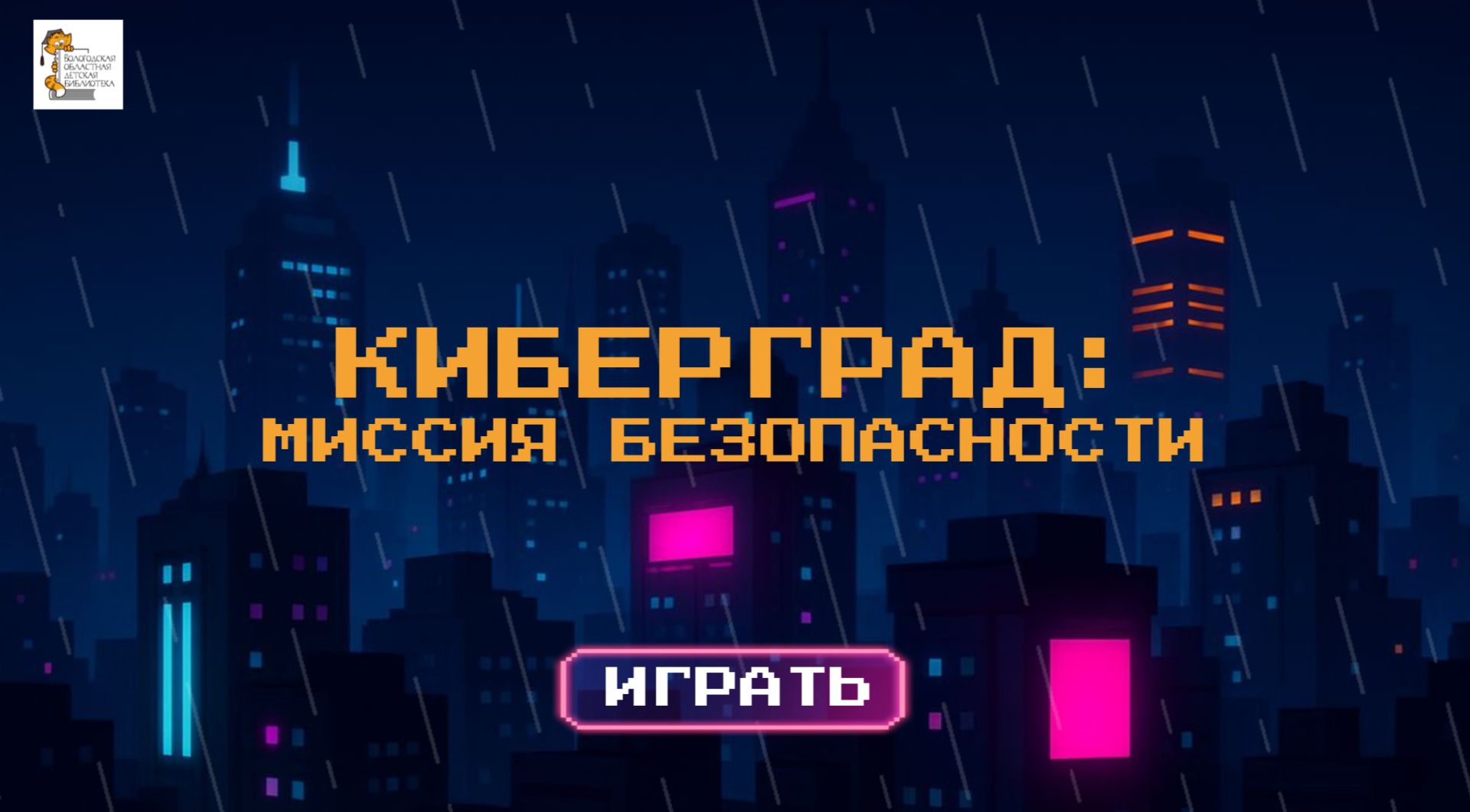 Вологодская областная детская библиотека приглашает всех желающих, особенно школьников, принять участие в онлайн-игре «Киберград: миссия безопасности». Участникам предстоит выполнить интересные задания от жителей далекого Киберграда, проверить свои цифровые знания и понять, как пользоваться интернетом безопасно.