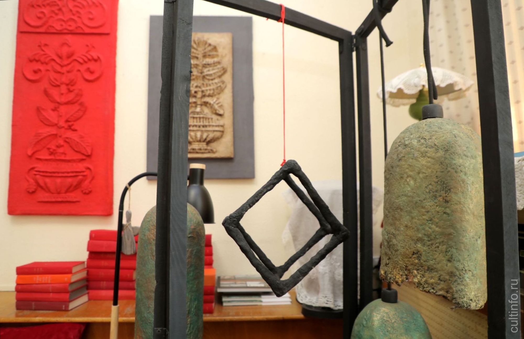 С 12:00 и до 16:00 можно бесплатно посетить литературное пространство и получить праздничную чашку чая. В резиденции работает три выставки. Из картинной галереи переехали «Объемы» Константина Соколова – это панно, выполненные в технике папье-маше, с изображением славянских символов, фрагментов домовой резьбы, северных изб.