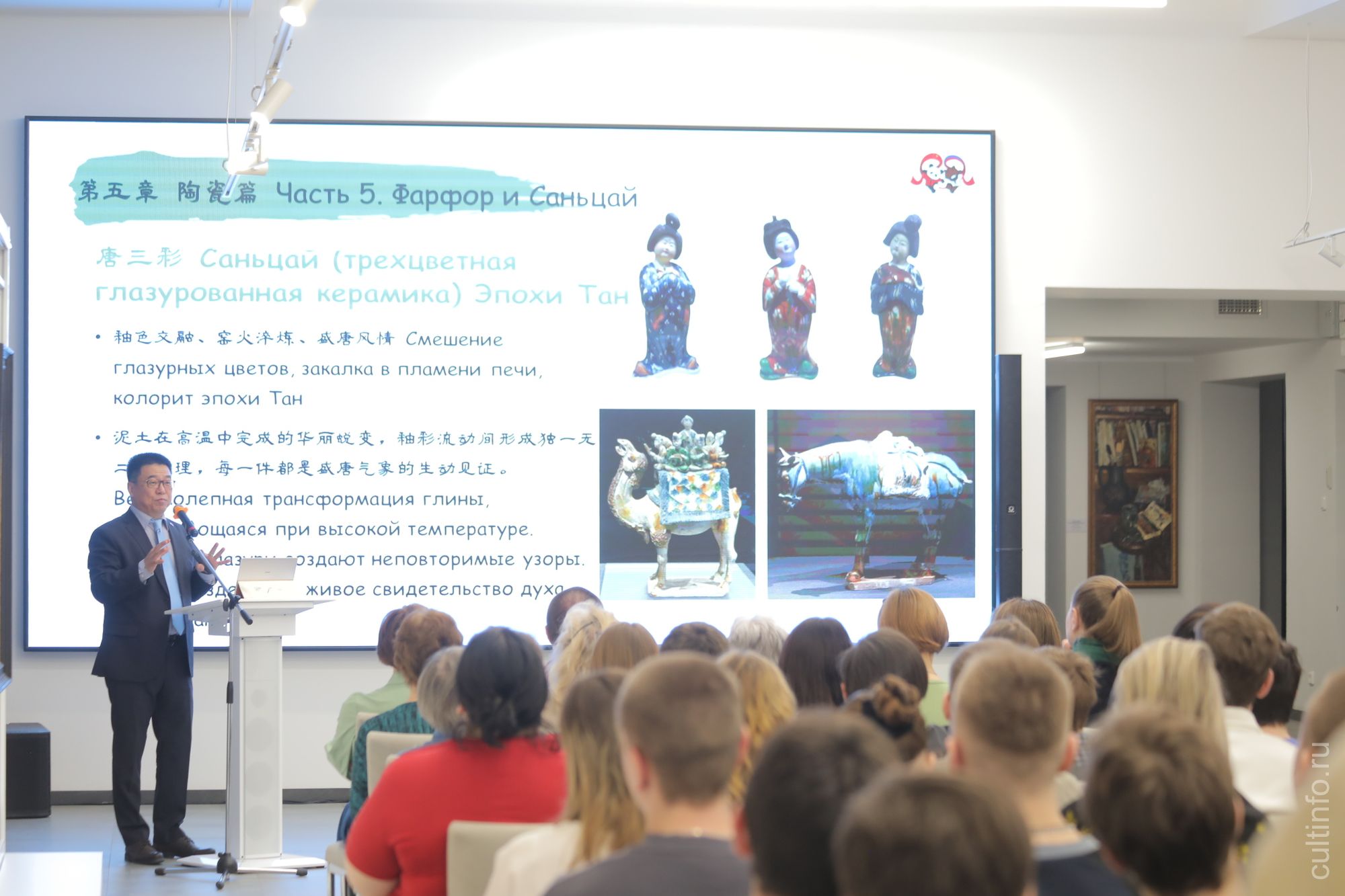 Провинция Шэньси – один из древнейших культурных центров Китая. Профессор Тан Хань представил самые яркие примеры материальной культуры провинции Шэньси, включая особенности местных традиционных ремёсел. Слушатели узнали о том, что в эпоху Тан ценились полные женщины, а император ездил на колеснице в форме черепахи, что символизировало долголетие. Поведал лектор и хитрости, применявшиеся при изготовлении посуды: например, в «рюмку справедливости», благодаря специальному носику, хозяин не мог налить гостю больше, чем себе.